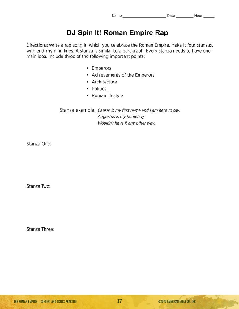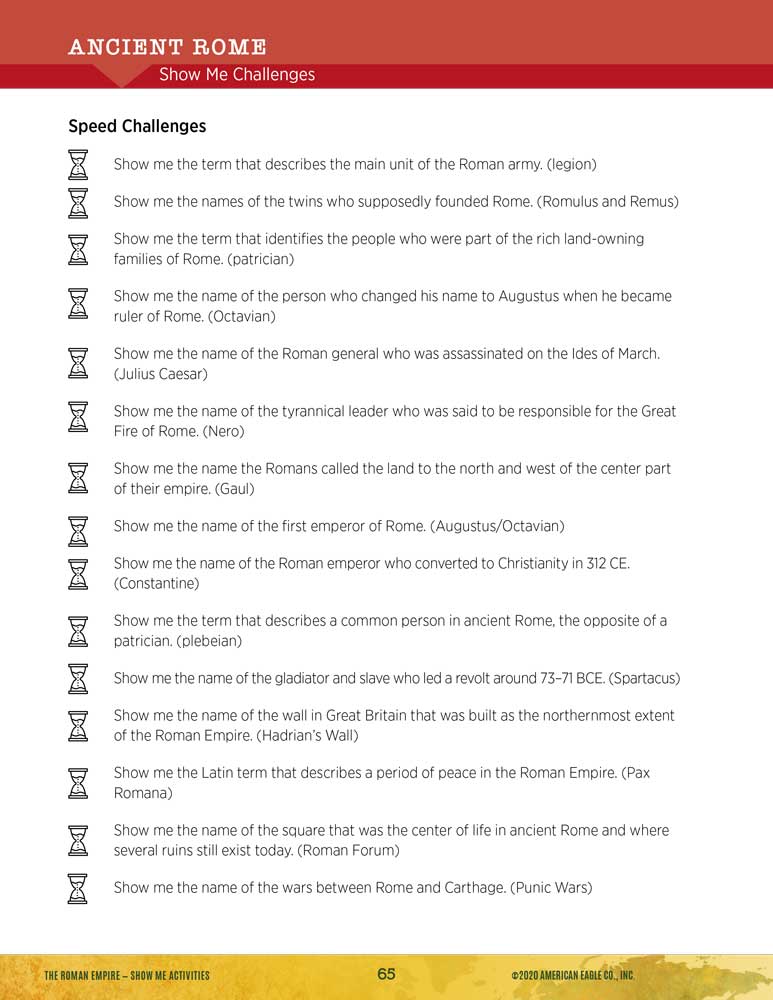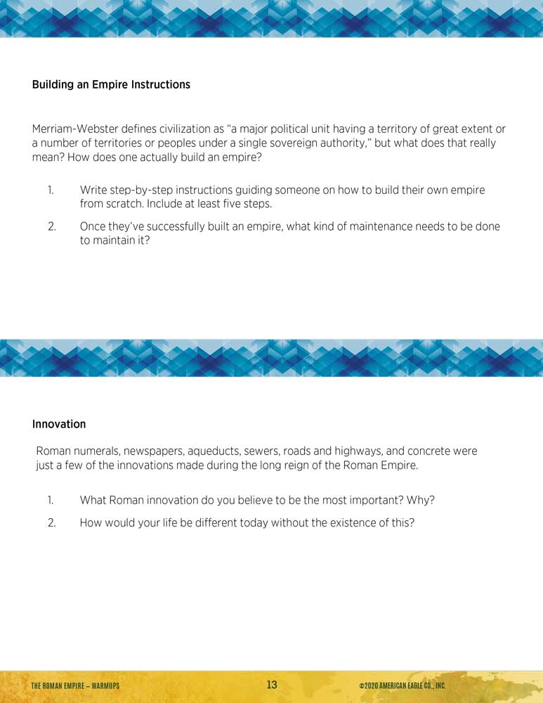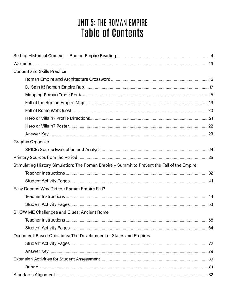 - Activities include: Easy Debate: Why Did the Roman Empire Fall?, Stimulating History Simulation: Summit to Prevent the Fall of the Empire, SHOW ME Challenges and Clues: Ancient Rome, and Document-Based Questions: The Development of States and Empires.