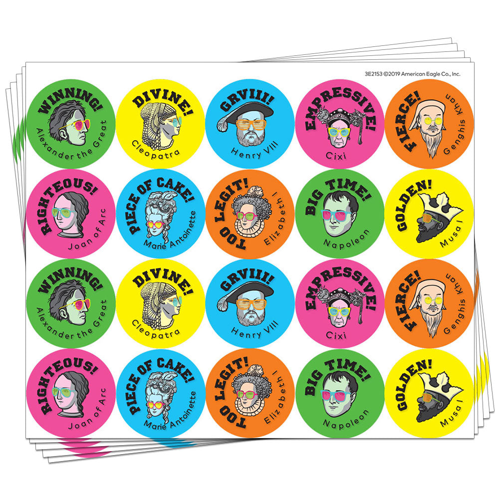 Stock up on stickers for your history classes! Get an assortment of 600 stickers, including American Founding Fathers, influential Black Americans, and notable and notorious figures from world history.