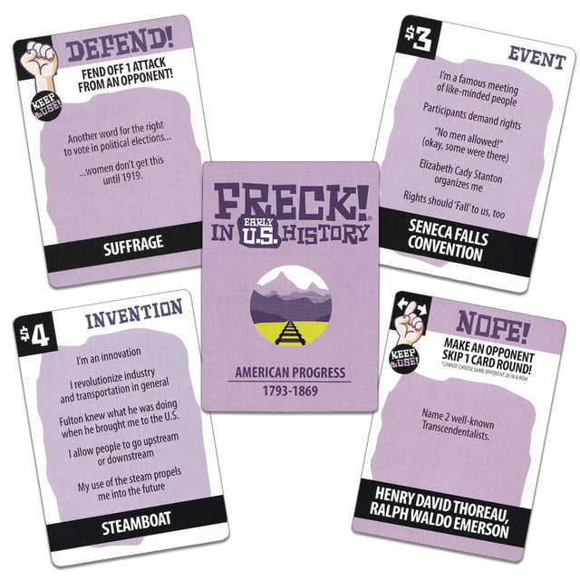 So much more than boring flash cards or “I Have, Who Has,” FRECK! is the fast, fun trivia game for U.S. History! Quirky clues challenge students’ knowledge of key eras, figures, events, and concepts. Play as traditional trivia or use FRECK! to amp up your warm-ups, exit tickets, writing activities, and more!