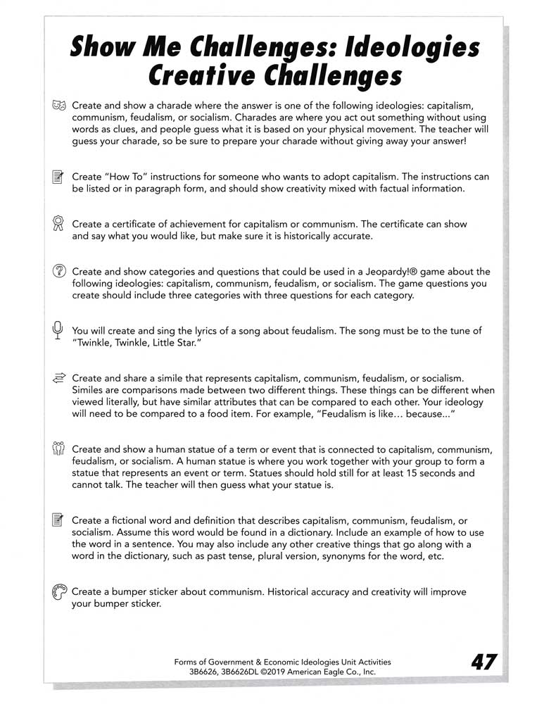 What's the difference between socialism and communism? How is a republic different from a democracy? Get posters to answer questions like these at a glance, then back them up with ready-made, leveled unit activities! Posters and activities cover: