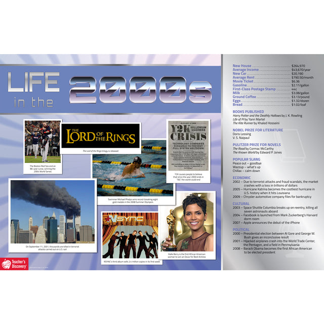 In the 2000s, you could buy a loaf of bread for $1.02 and it only cost $2.11 a gallon for gas to drive to the store! Real photos, historical events, and cost-of-living comparisons show students how generations before them lived.