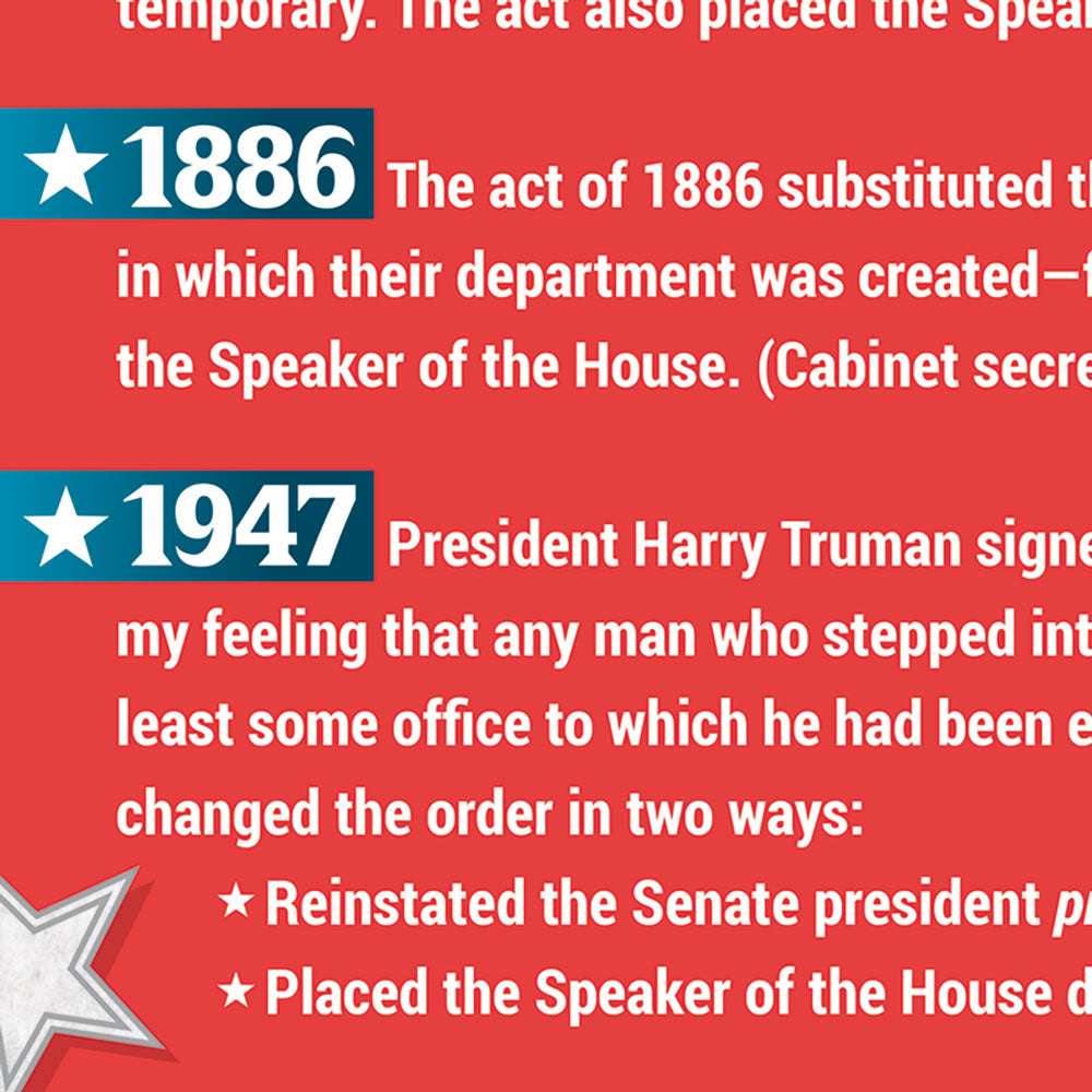 Who’s in the line of succession if the commander in chief is out of commission? The Founding Fathers created a blueprint for presidential succession that’s been modified a few times—see when and why.