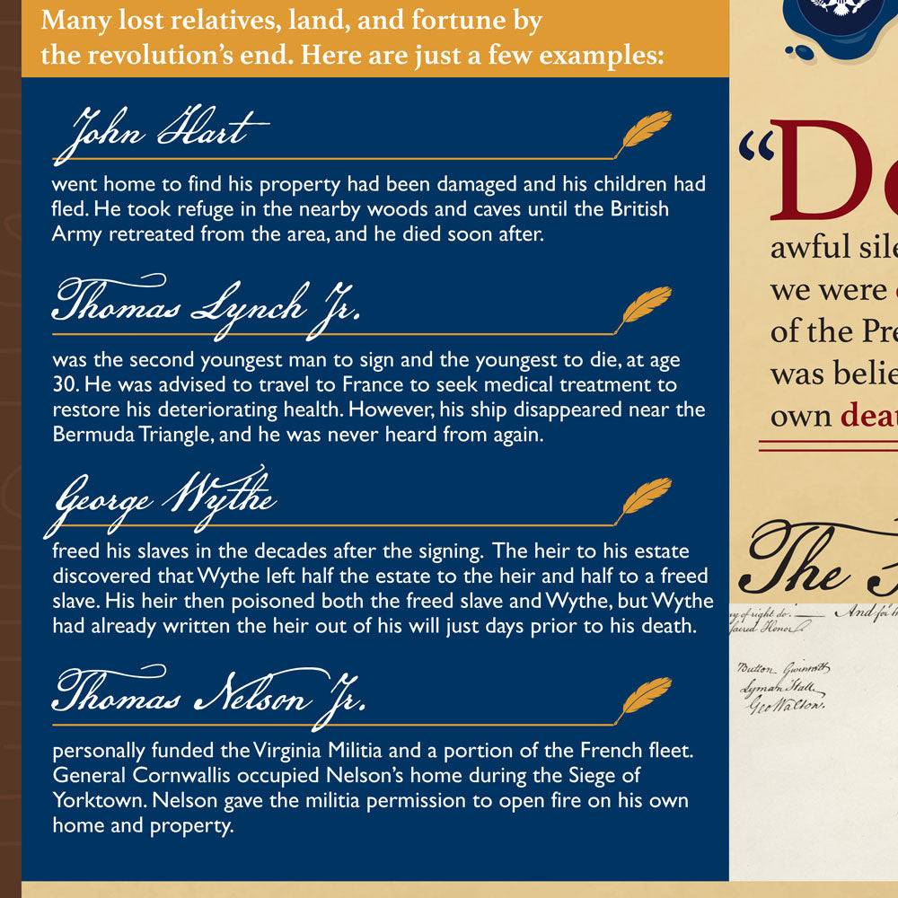 25 lawyers, 334 children between them all, and 9 died before the Revolutionary War ended. In total, 56 men signed the most important document in American history, the Declaration of Independence. We know what they did, but do we really know their stories?