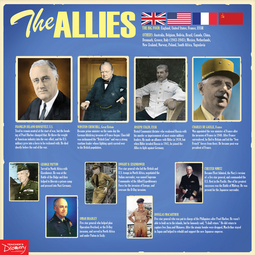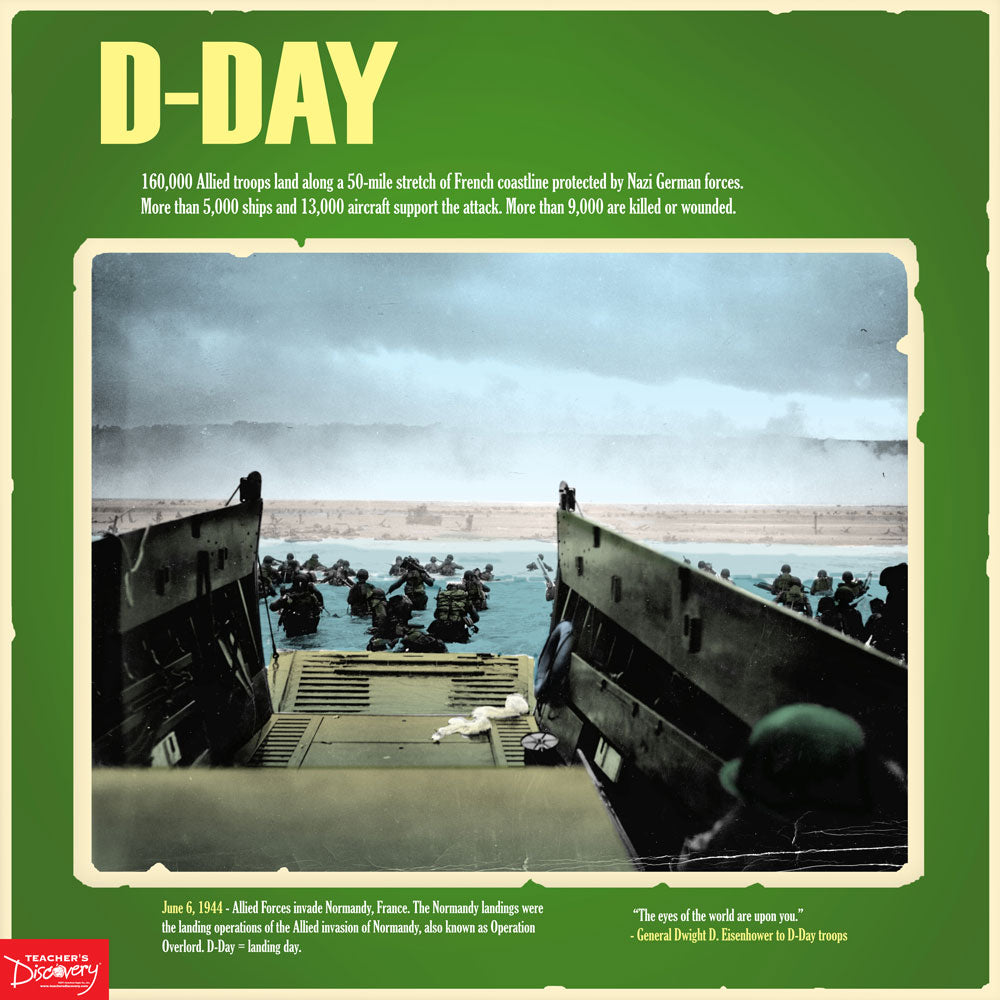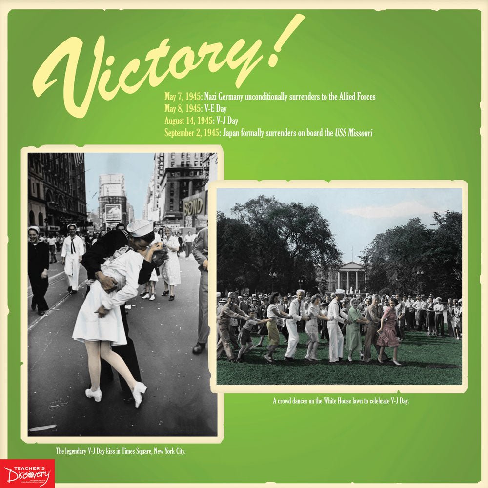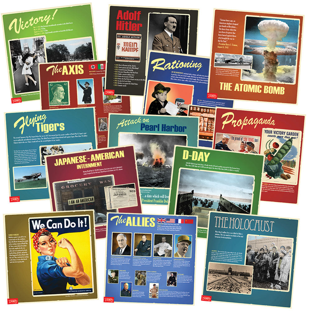 Give students a new look at World War II with these 13 brightly colored posters. Each of the 13 posters has the feel of the war era and highlights an important event in the war or pop culture of the time. Show students what was going on in the war and on the home front.