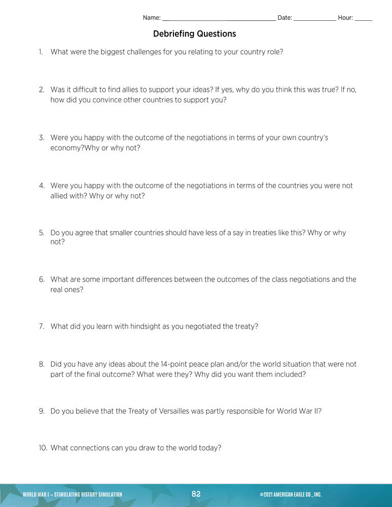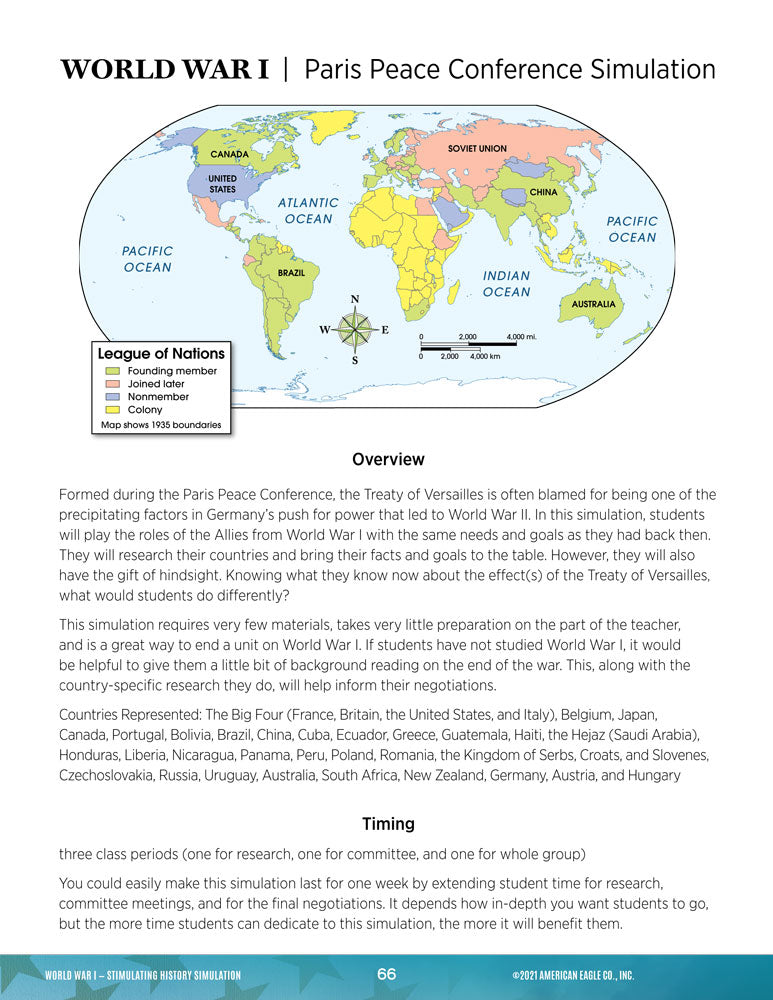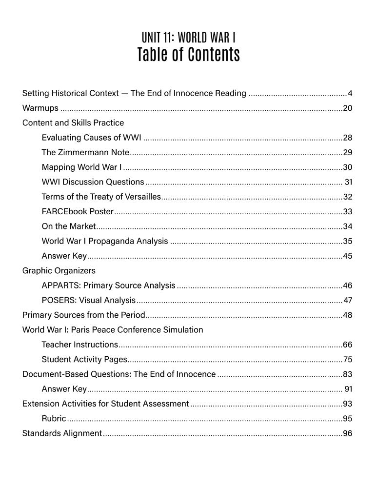 - Activities include: World War I Propaganda Analysis, Paris Peace Conference Simulation, and Document-Based Questions: The End of Innocence.