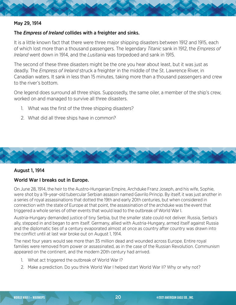 U.S. History Thematic Unit: World War I Download is backordered and will ship as soon as it is back in stock.