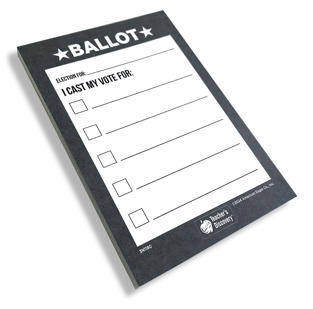 Hold mock elections all year round with this experiential learning kit that gives students the opportunity to think critically and cast their votes. Whether it’s a class vote for a presidential election, student government, or determining which is better: Pepsi or Coke, your students get hands-on experience participating in democracy.