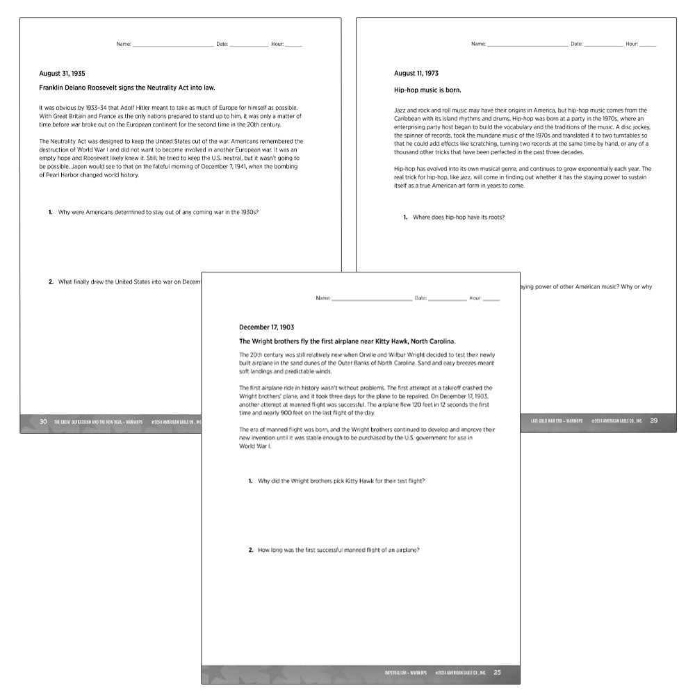 - High-interest warmup activities to get students thinking about topics from the time period