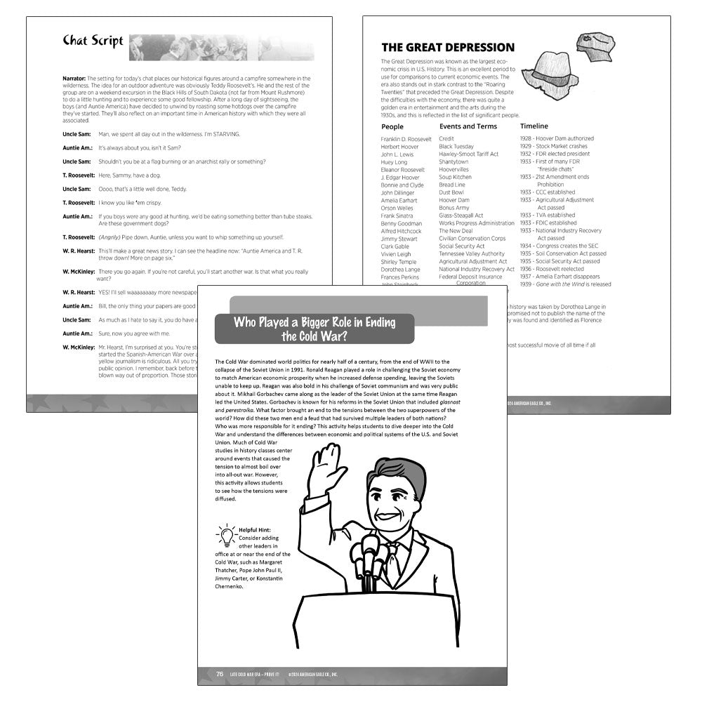 - Three reproducible, spiral-bound print books aligned to C3 and Common Core standards encompassing a total of nine units from the Thematic Units for U.S. History 2 series with background information, activities, documents, and projects