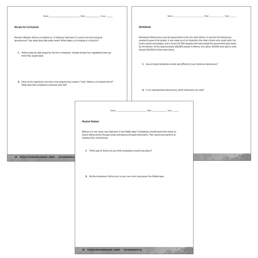 - High-interest warmup activities to get students thinking about topics from the time period