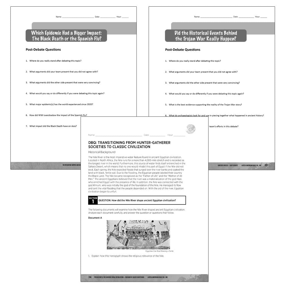 - Three reproducible, spiral-bound print books aligned to C3 and Common Core standards encompassing a total of nine units from the Thematic Units for World History 1 series with background information, activities, documents, and projects
