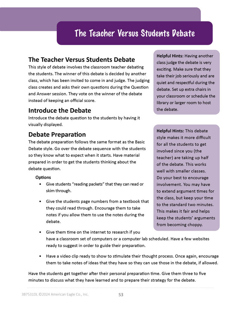 Plus, once you master the simple, step-by-step instructions and multiple debate styles laid out in this book, you'll be ready to create your very own debate topics for any social studies classroom!