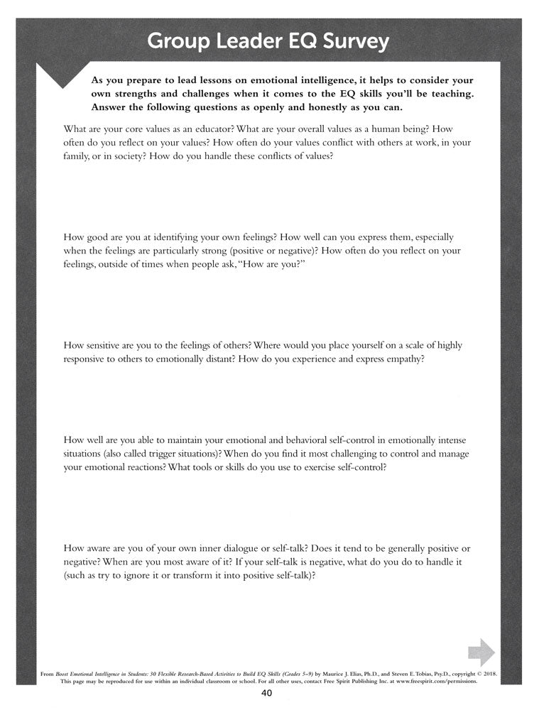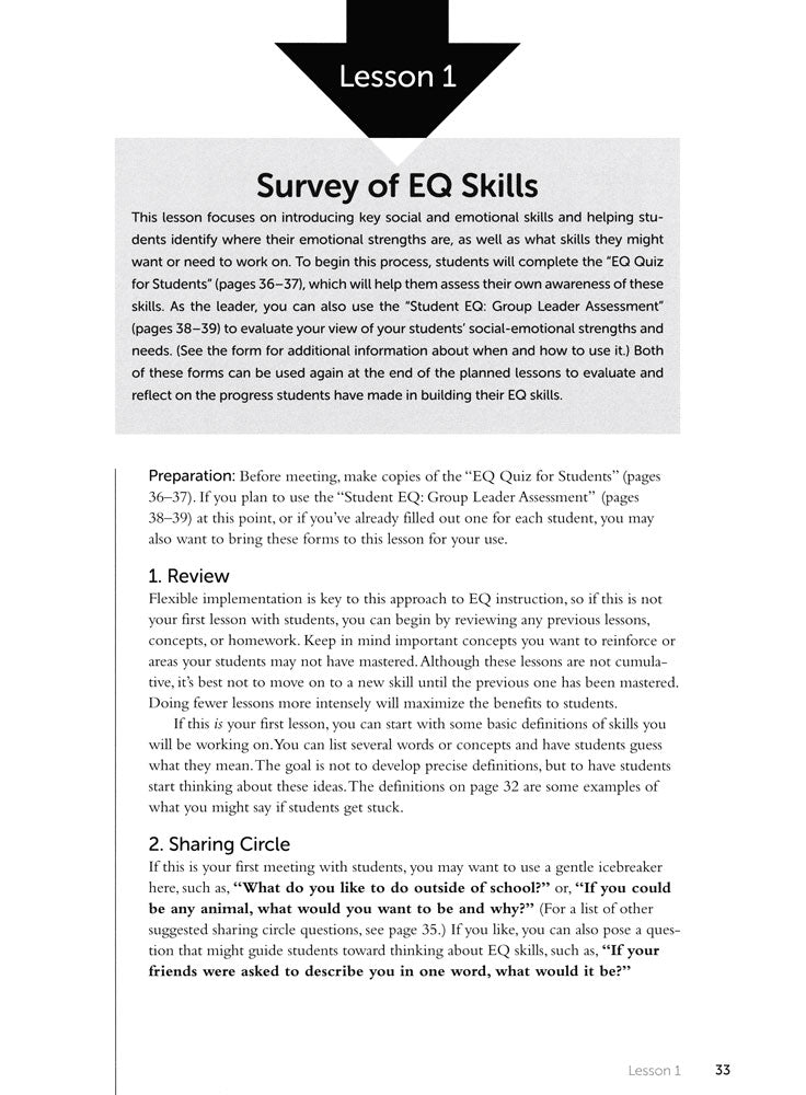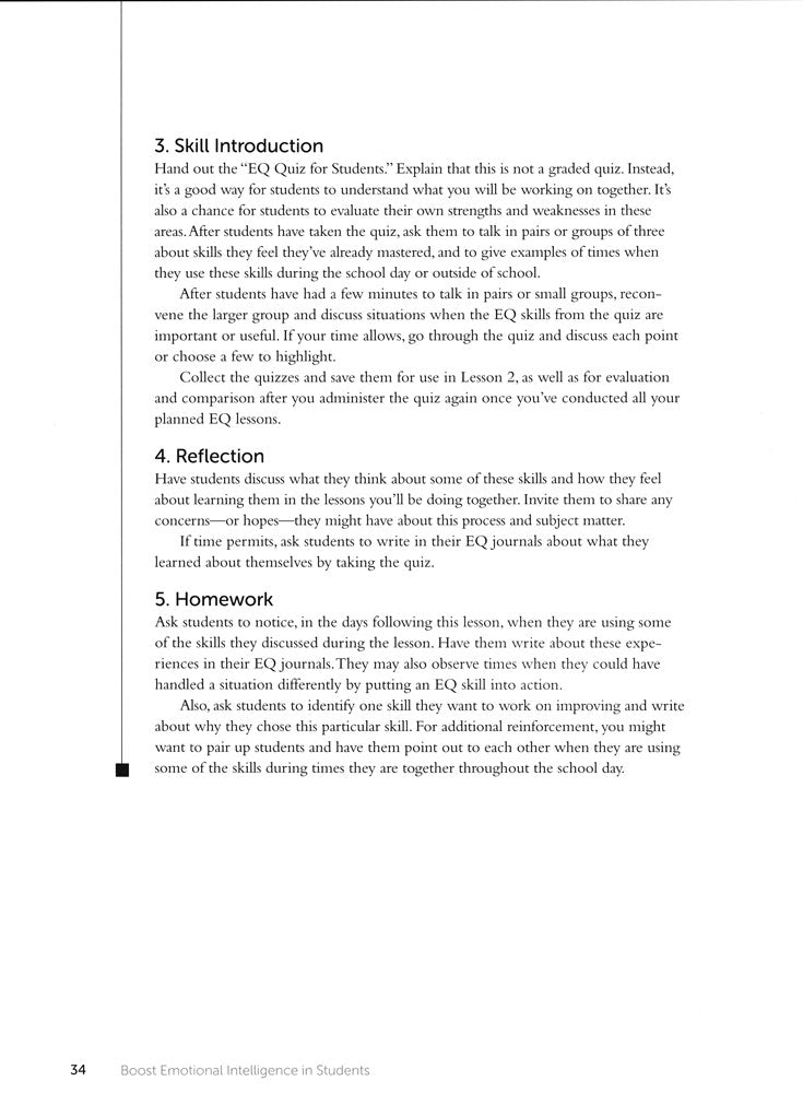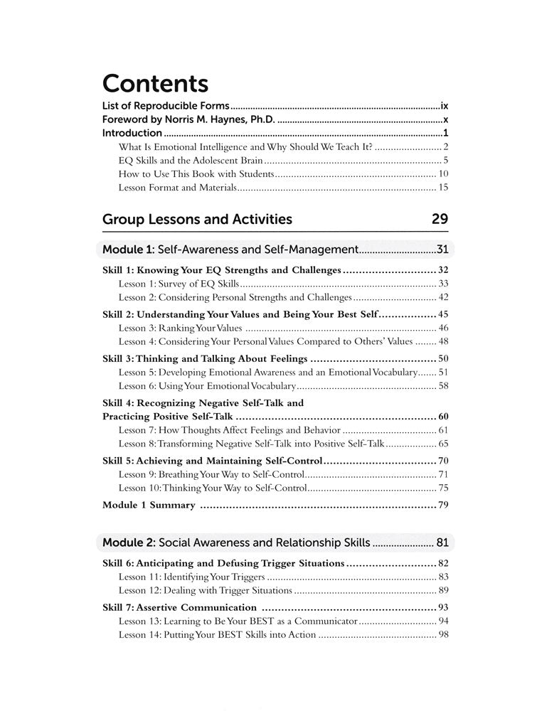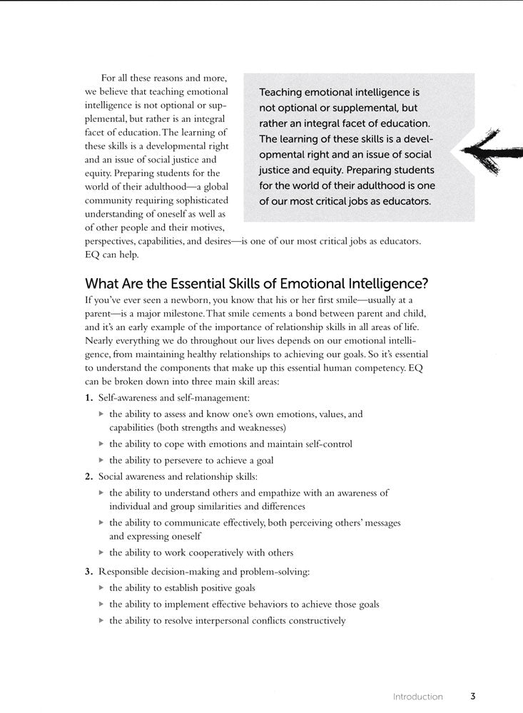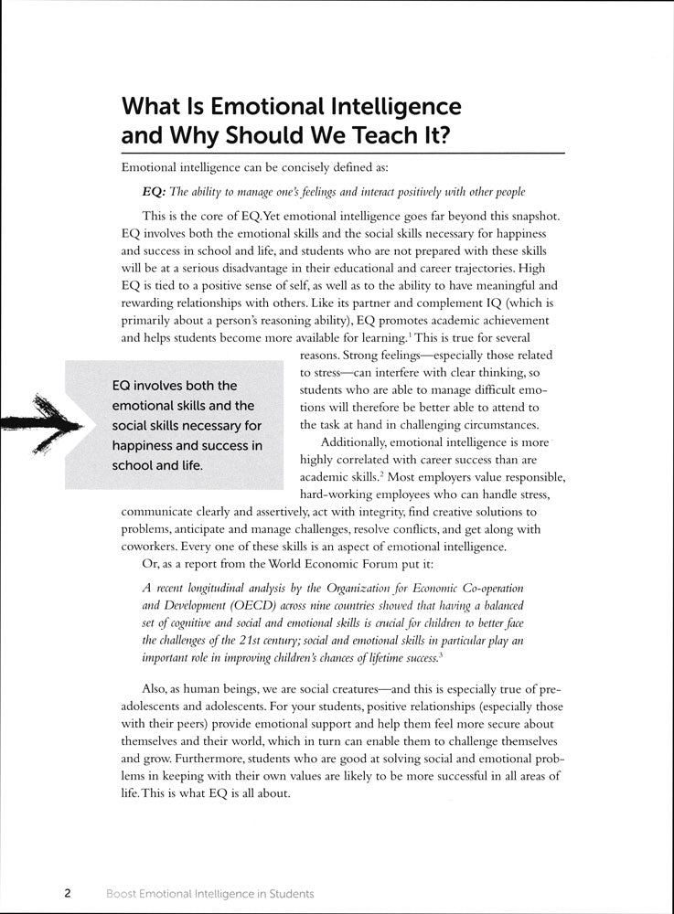 Develop emotional intelligence (EQ) with sequenced lessons focused on critical EQ concepts. These easy-to-use and flexible hands-on lessons utilize instructional strategies designed to fit the developmental needs and strengths of adolescents.