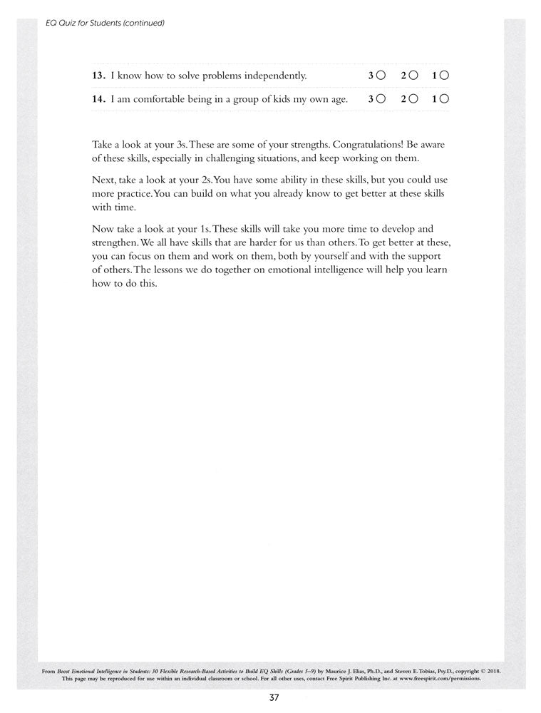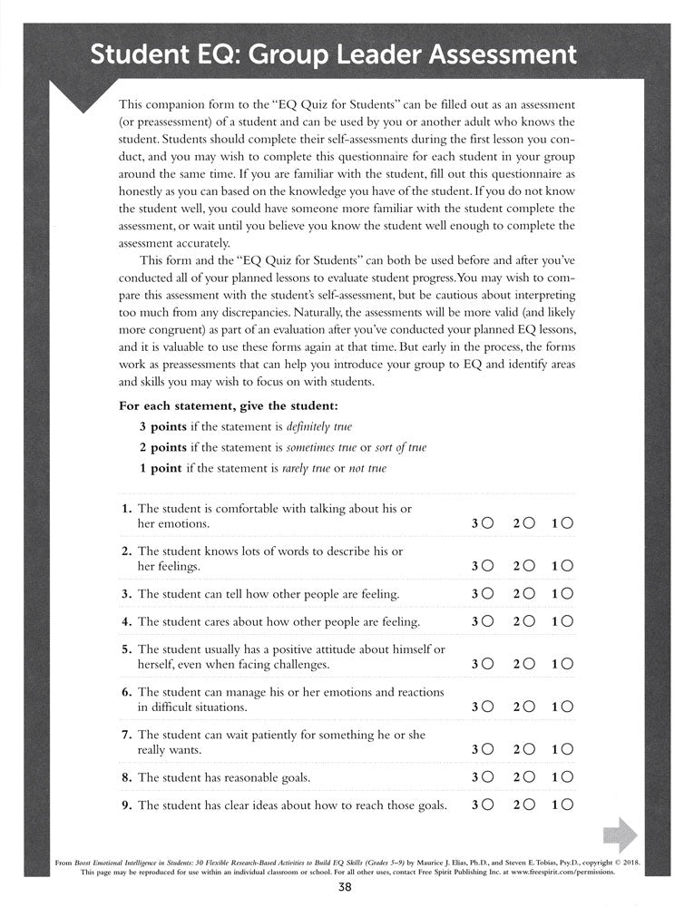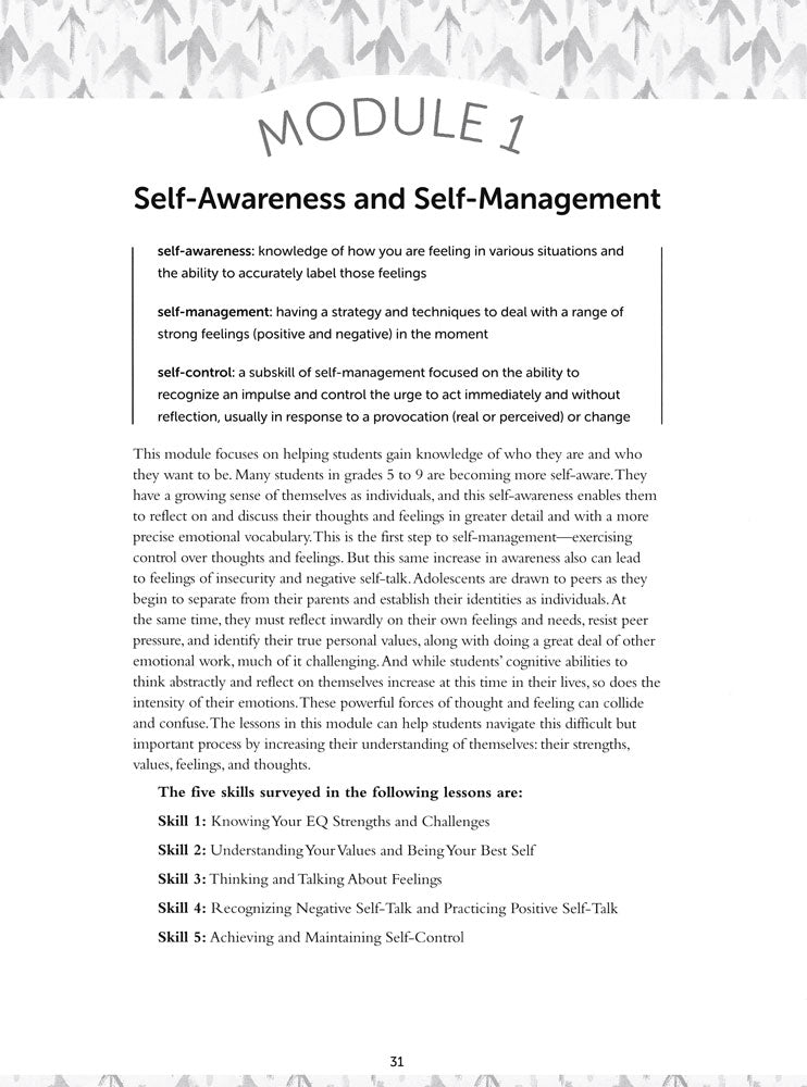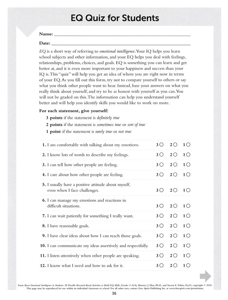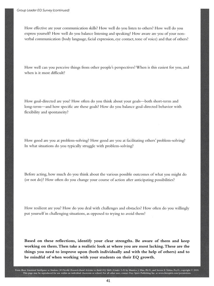 Develop emotional intelligence (EQ) with sequenced lessons focused on critical EQ concepts. These easy-to-use and flexible hands-on lessons utilize instructional strategies designed to fit the developmental needs and strengths of adolescents.