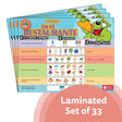 Laminated Set of 33: 8.5 x 11 inches. Full-color on 14 pt. cardstock, UV coated.