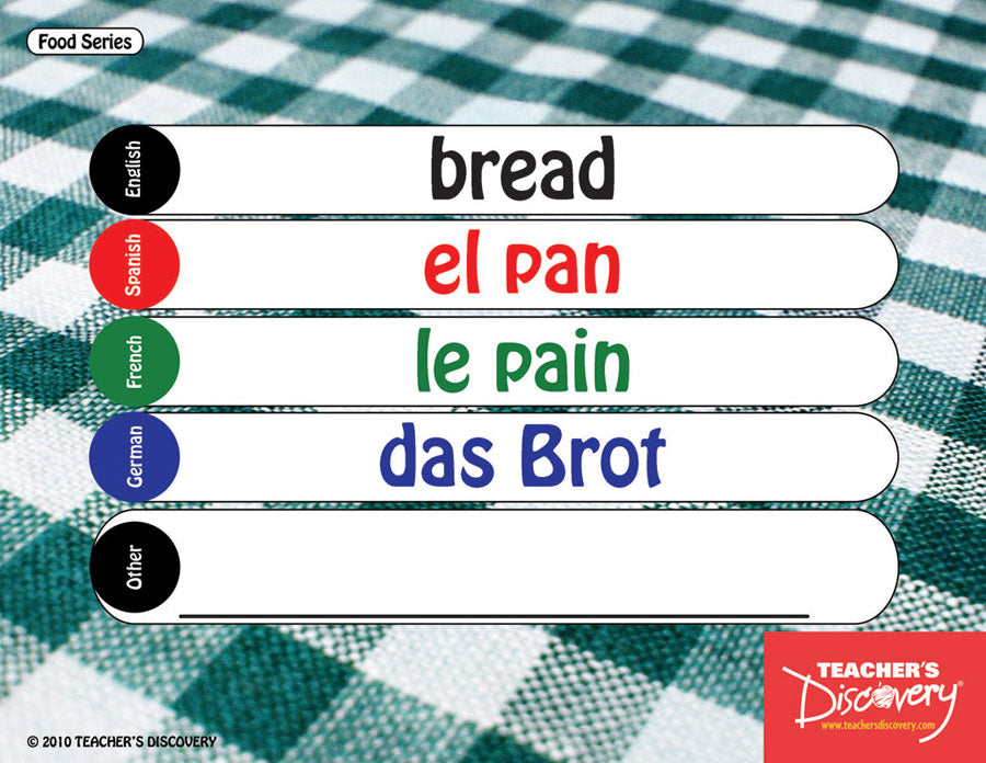 Flash cards with 32 topic-related vocabulary words. The flashcards are 6.5 x 5 inches with vocab in English, Spanish, French and German; plus a blank space to add your own language on the back. We've even included a reproducible study sheet for the students. Includes an envelope for storage.
