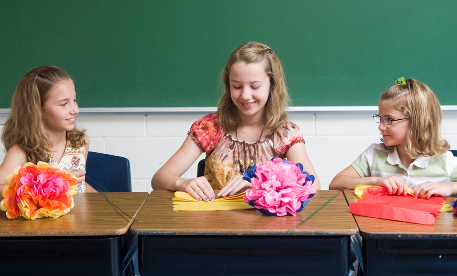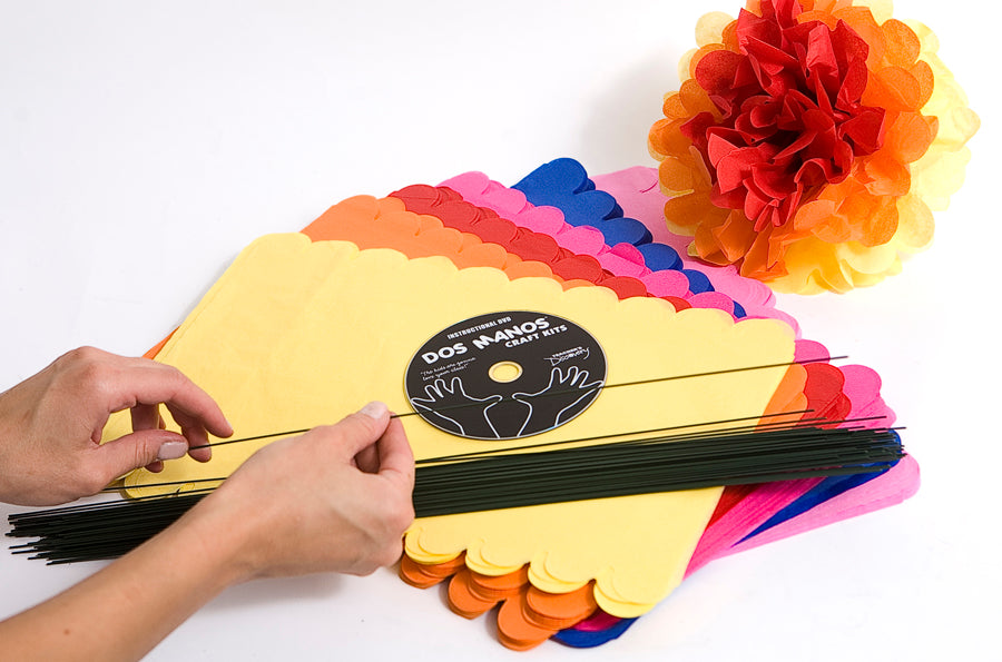 These blooms are quick and easy enough for anyone to make. The assorted colors of tissue paper are die-cut to the proper size, with a scalloped edge that makes a great-looking flower, and the wire is pre-cut to the perfect length. You'll need no special equipment, and this kit produces NO MESS! One kit makes 90 big (10-inch) flowers! Even younger kids can do this with a little help.