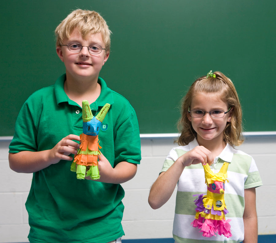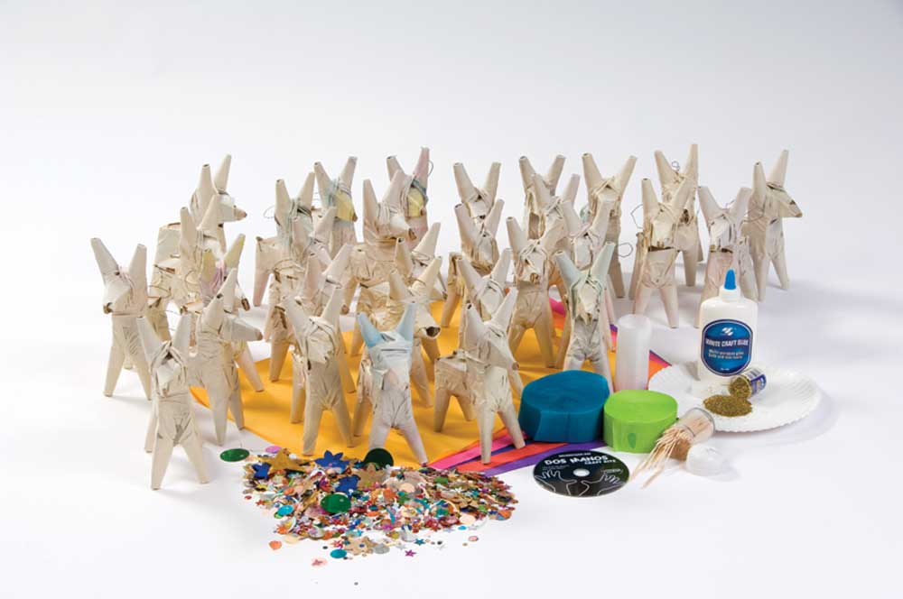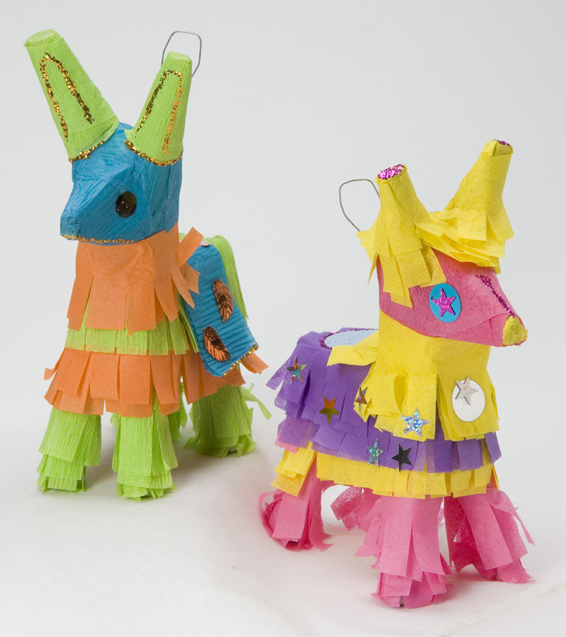 These piñatas aren't fillable, but that's okay—kids like them too much to break them. Made by the same craftspeople that make our great full-sized, fully decorated piñatas, these naked mini-burro need your class to decorate them with tissue and sequins to be complete. Kit includes 30 mini-burros (6 inches high) and all the stuff to decorate them with. Fun and easy even for younger students.
