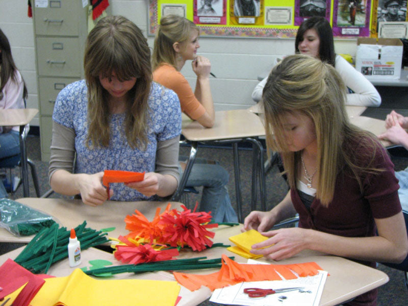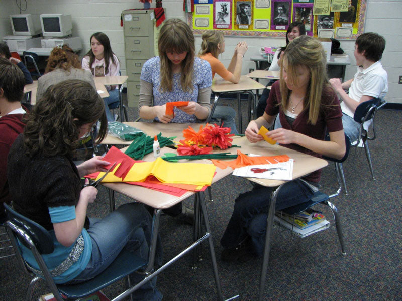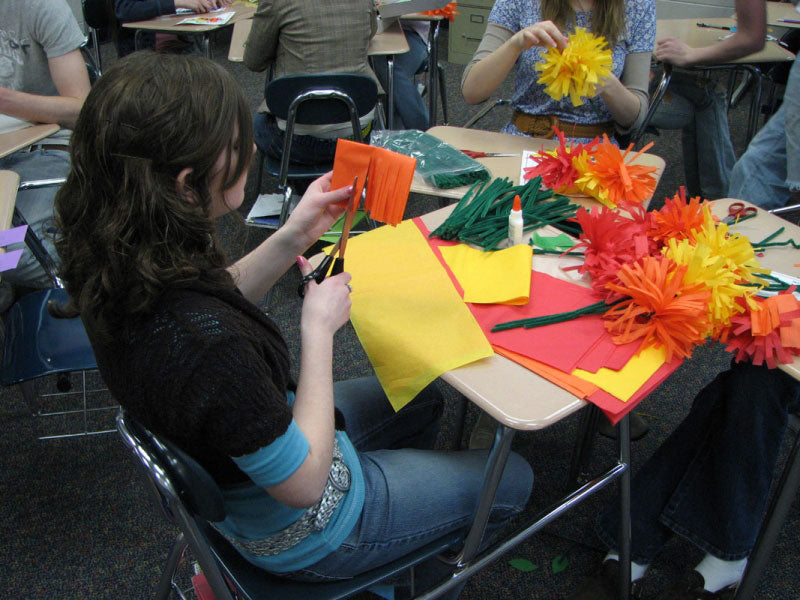 Brightly colored marigolds are part of every Day of the Dead celebration. Kit includes tissue paper and pipe cleaners. Makes 120 marigolds.