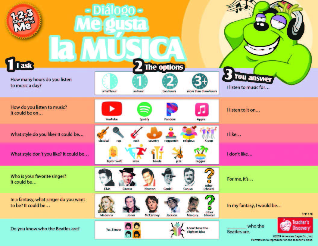 1-2-3 Chat With Me: Me gusta la música Spanish Chat Mat PDF Download