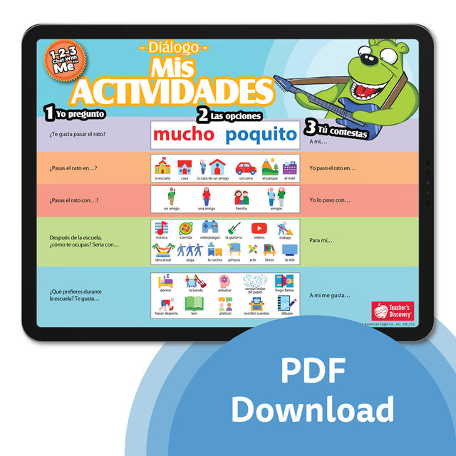1-2-3 Chat With Me: Mis actividades Spanish Chat Mat PDF Download is backordered and will ship as soon as it is back in stock.