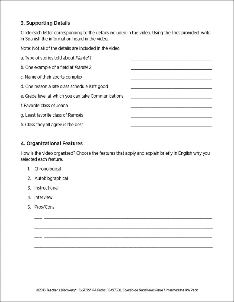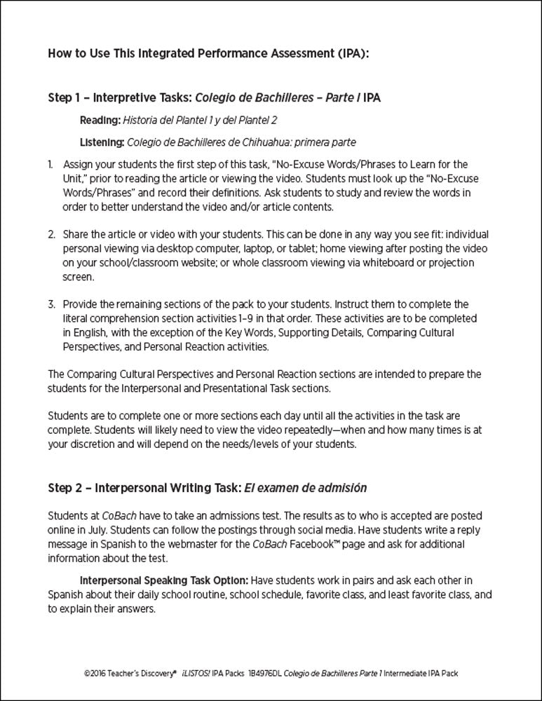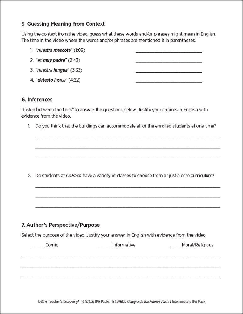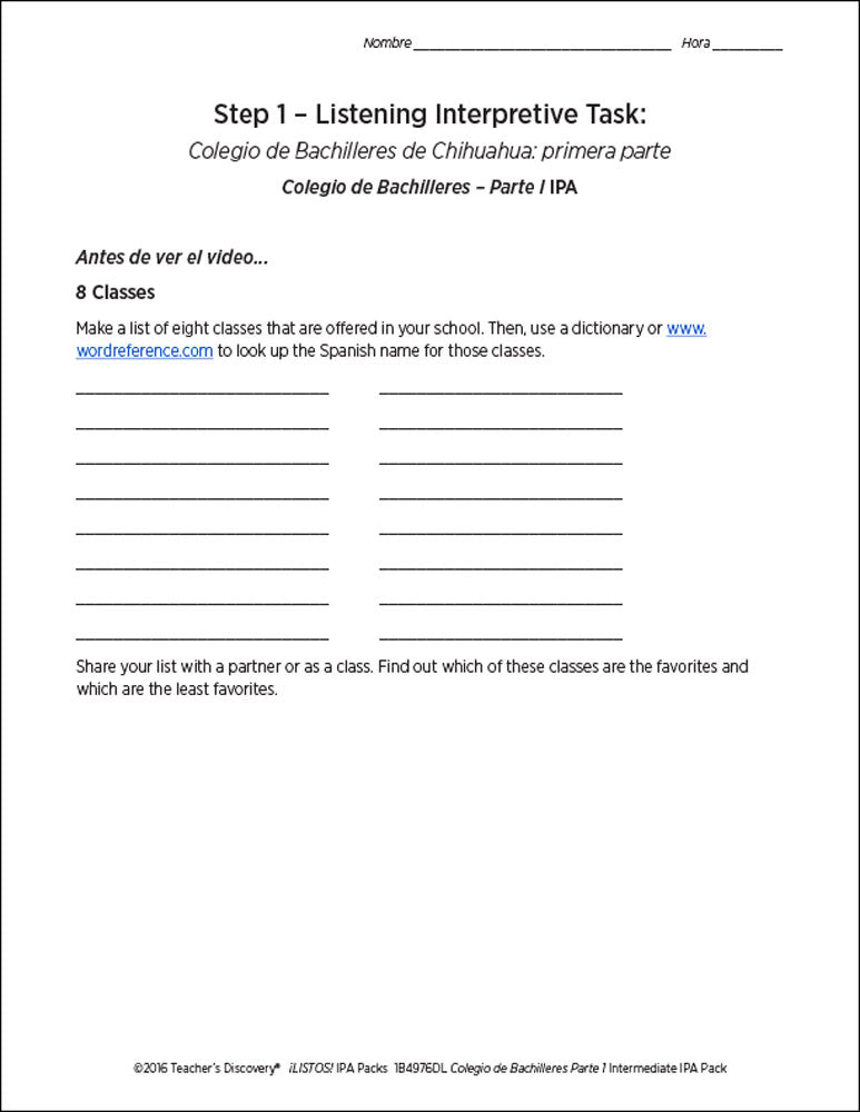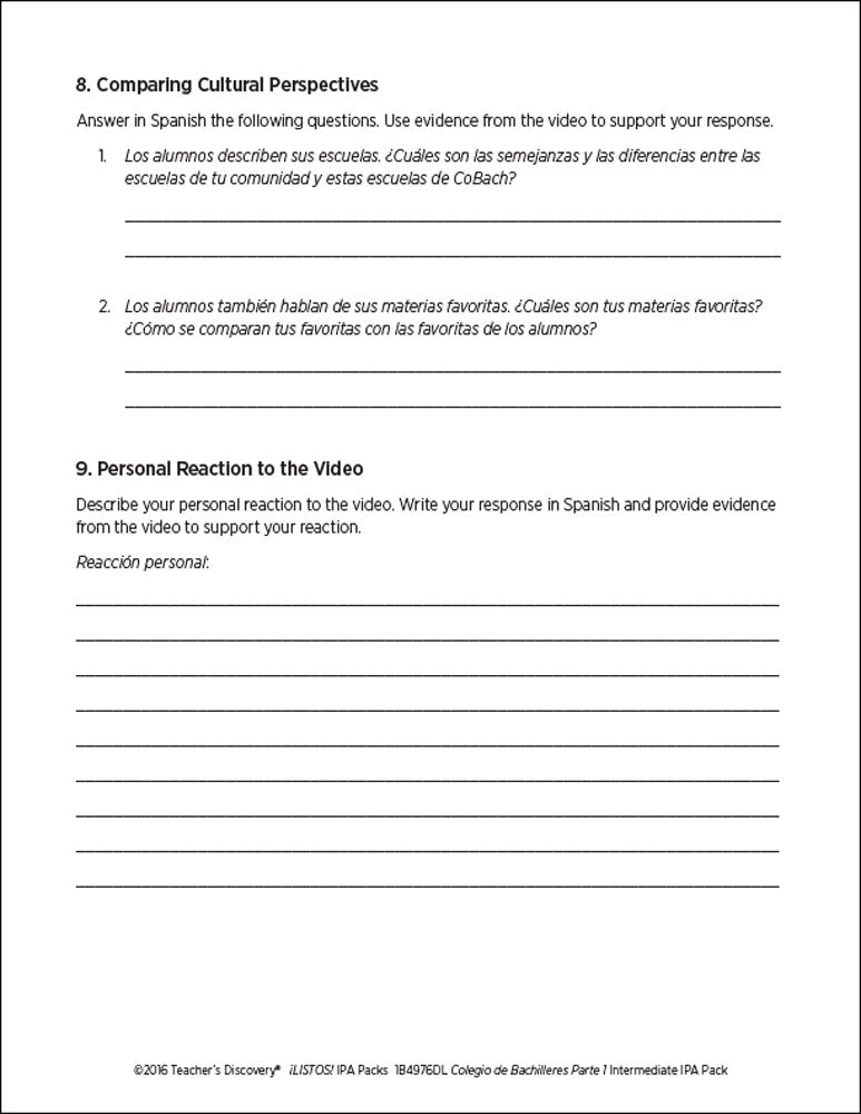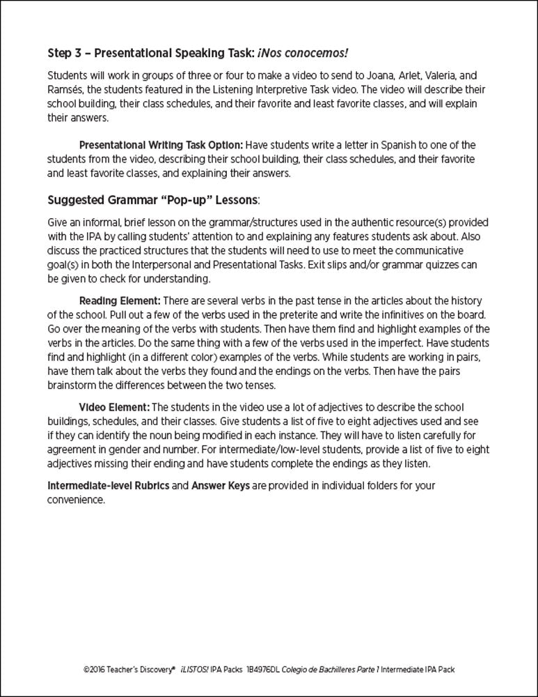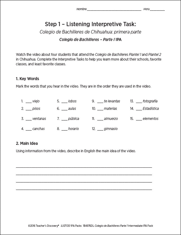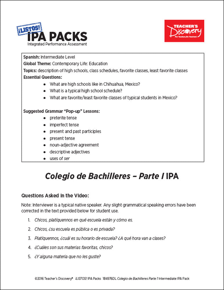 This ¡LISTOS! IPA Pack is based on two authentic resources: an article and an exclusive five-minute video filmed in Mexico of four teenagers sharing personal information about their high school experience in 100% Spanish.