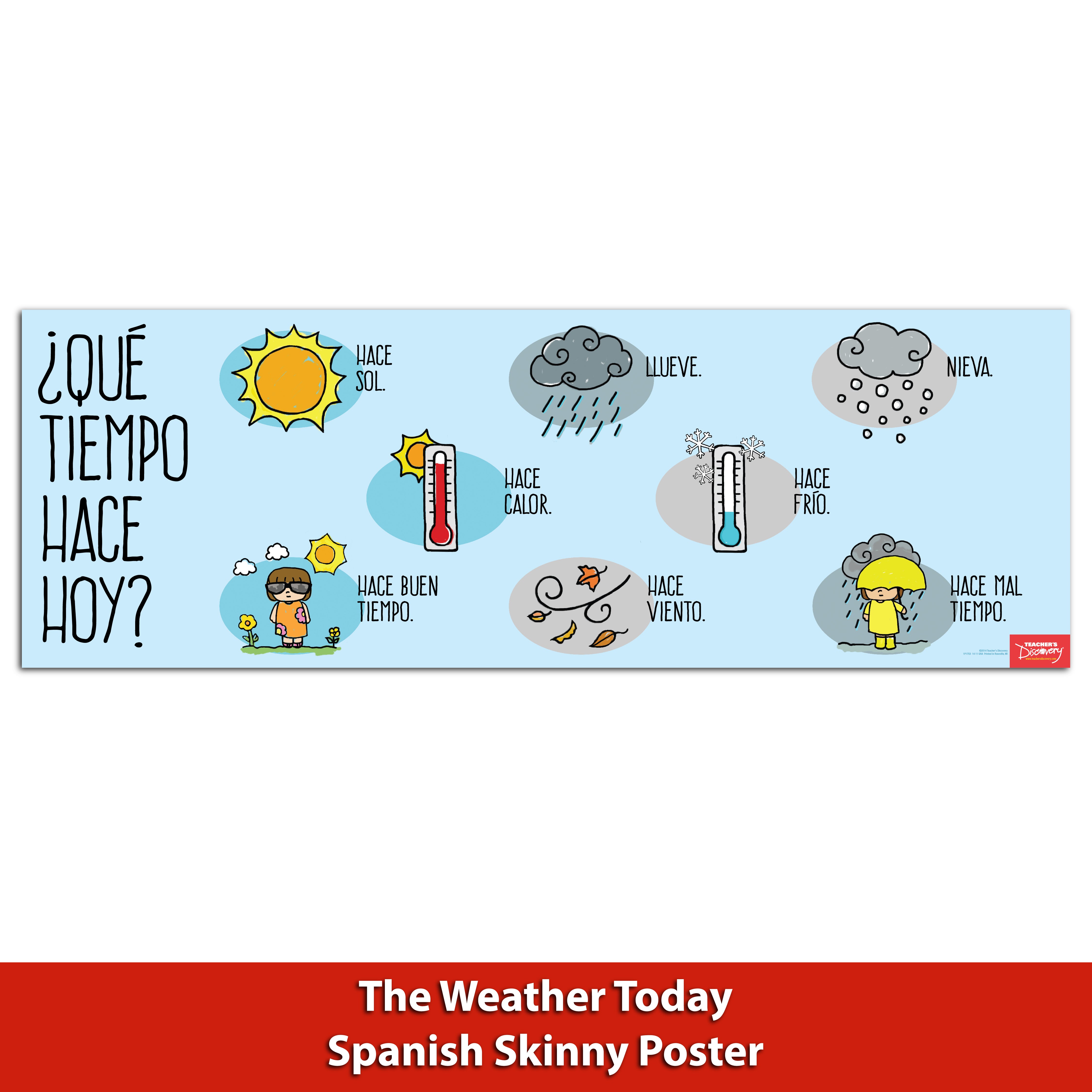 Find the right vocabulary to talk about whatever nature throws at you with eye-catching illustrations of basic weather phrases. 13 x 38 inches. Laminated.