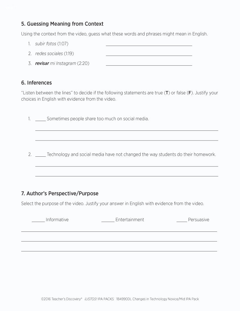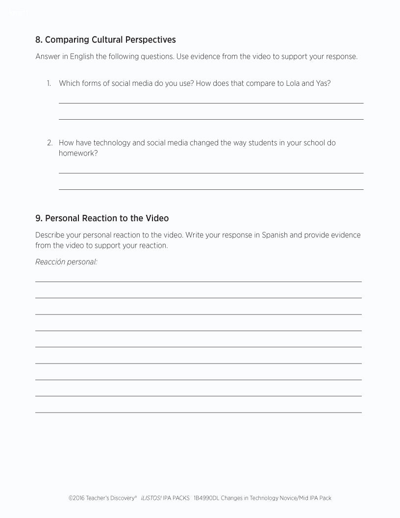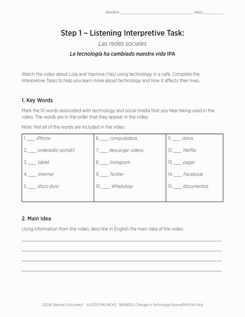 This ¡LISTOS! IPA Pack Download is based on two authentic resources: infographic chart and exclusive two-minute video filmed in Mexico of Lola and Yasmina in a café talking about what technology they use and how, and the ways technology and social media have changed their lives in 100% Spanish.