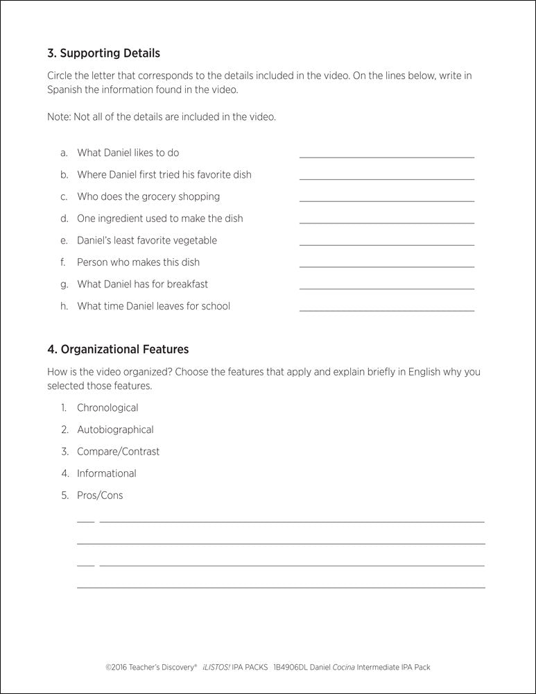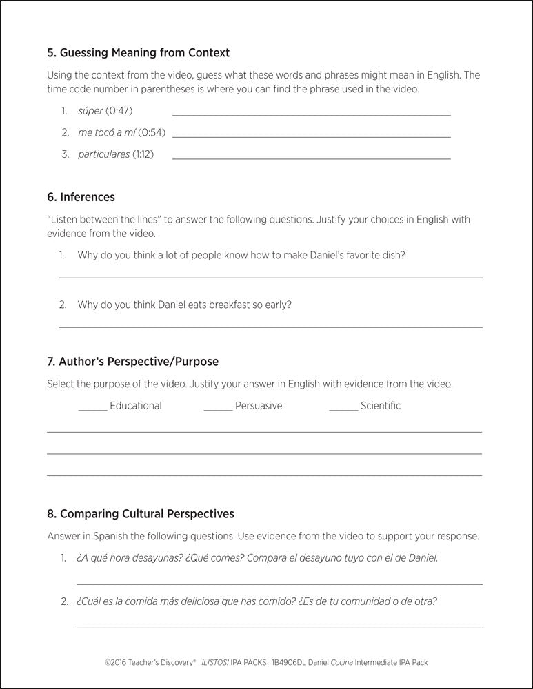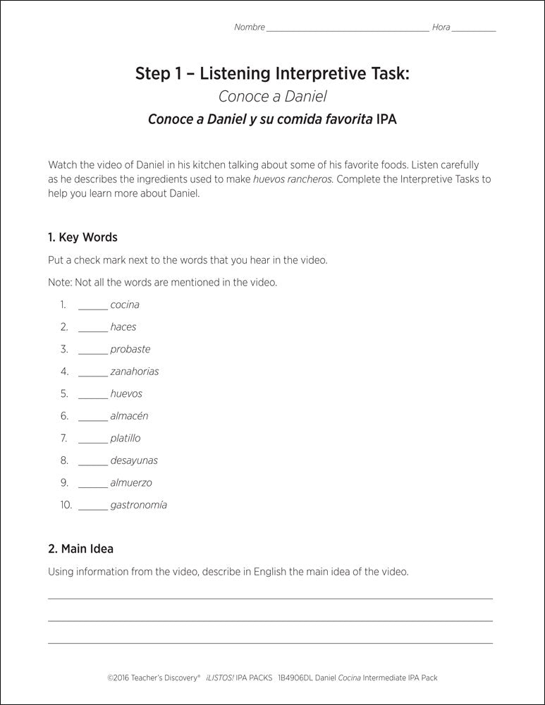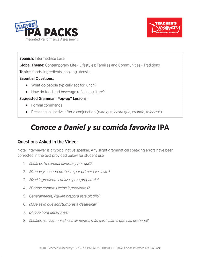 This ¡LISTOS! IPA Pack is based on two authentic resources: a traditional recipe and an exclusive two-minute video filmed in Mexico, of Daniel preparing to make a traditional family breakfast recipe and sharing information about it in 100% Spanish.