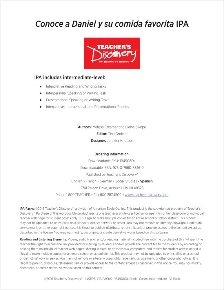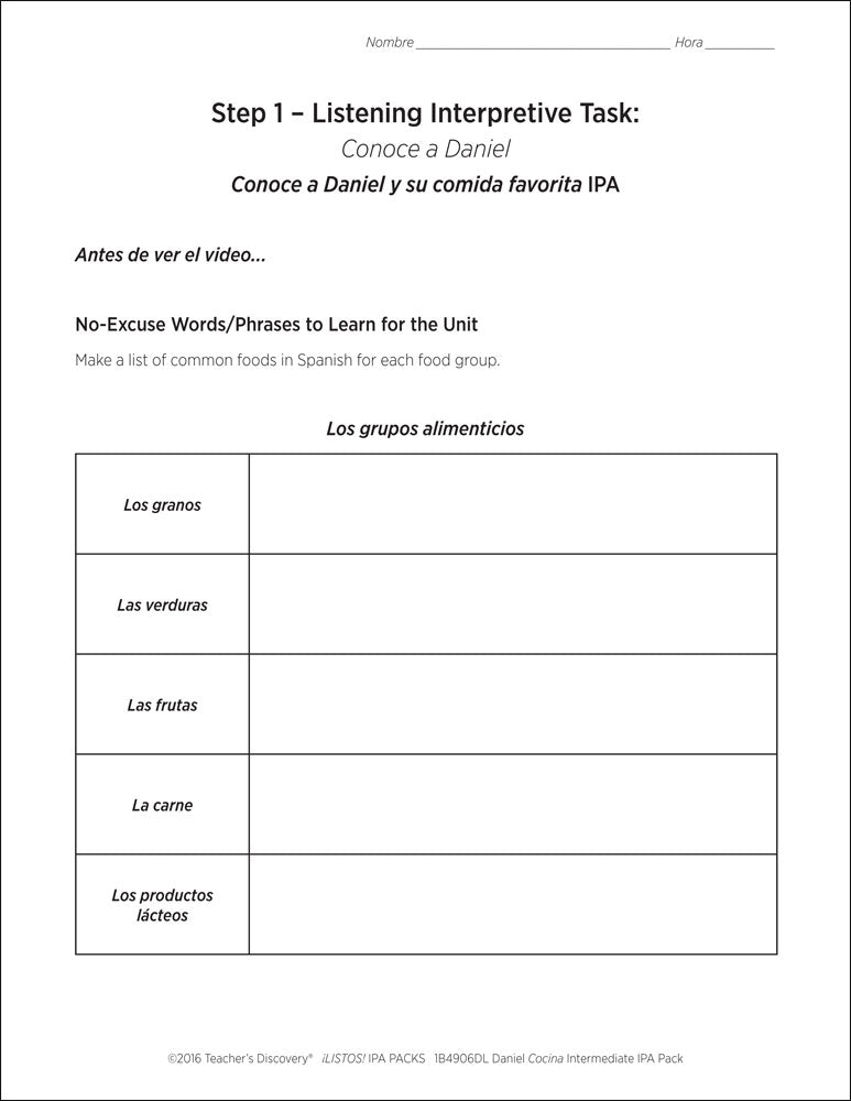 Daniel Cocina Intermediate-Low Spanish IPA Pack - DIGITAL RESOURCE DOWNLOAD