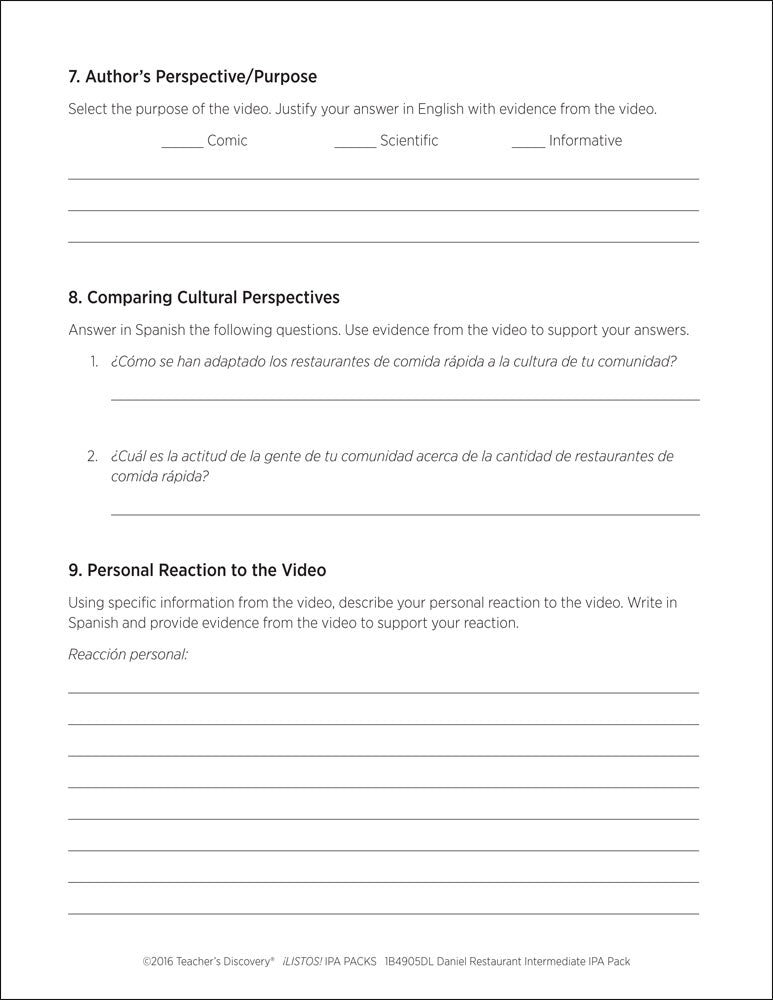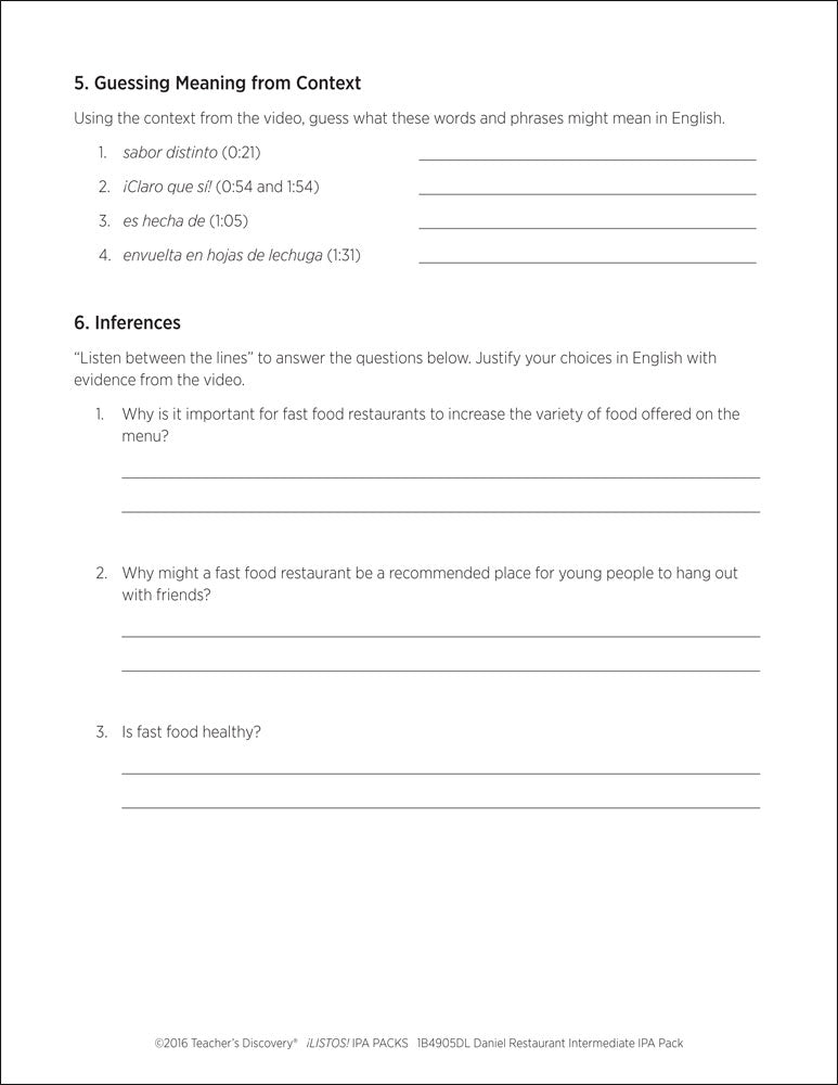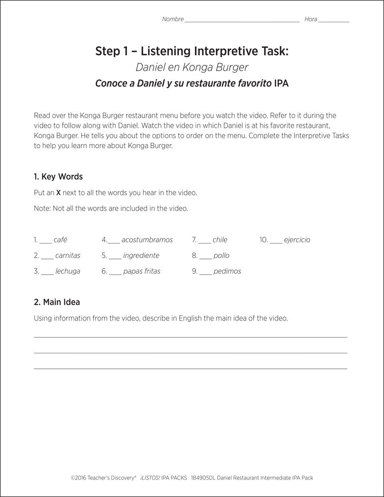 This ¡LISTOS! IPA Pack is based on three authentic resources: a short article, menu and an exclusive two-minute video filmed in Mexico, of Daniel eating in one of his favorite restaurants and sharing his experience in 100% Spanish.