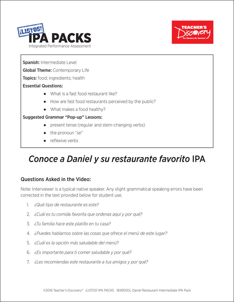Conoce a Daniel y su restaurante favorito IPA Pack—DOWNLOAD THIS FLEXIBLE DIGITAL RESOURCE TODAY!