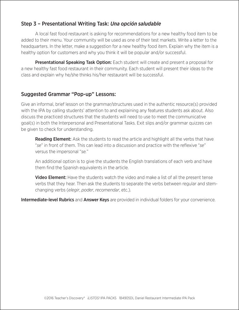 Daniel Restaurant Intermediate-Low Spanish IPA Pack - DIGITAL RESOURCE DOWNLOAD