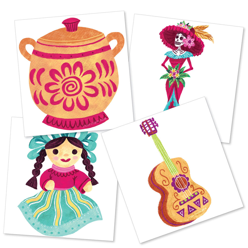 Put these Day of the Dead images in your presentations, use them to jazz up your handouts, print them and cut them out for classroom décor, or incorporate them into craft projects—it’s up to you! Twelve images, JPG and PNG formats. Download only.