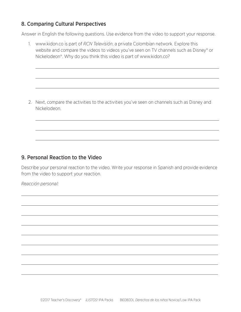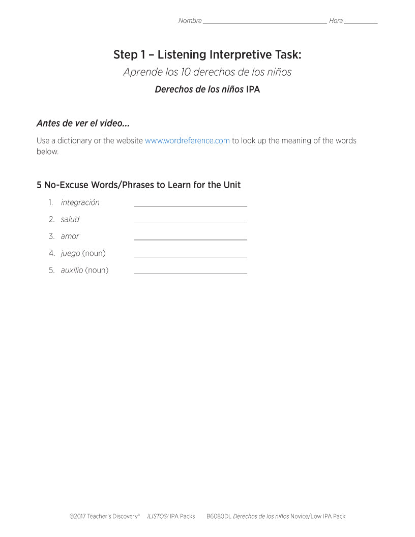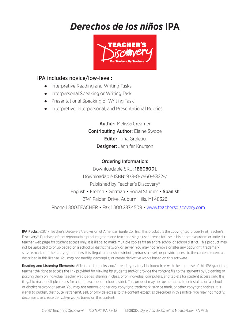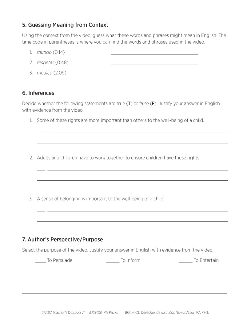 This ¡LISTOS! IPA Pack Download is based on two authentic resources: an infographic and a three-minute video describing 10 children's rights entirely in Spanish.