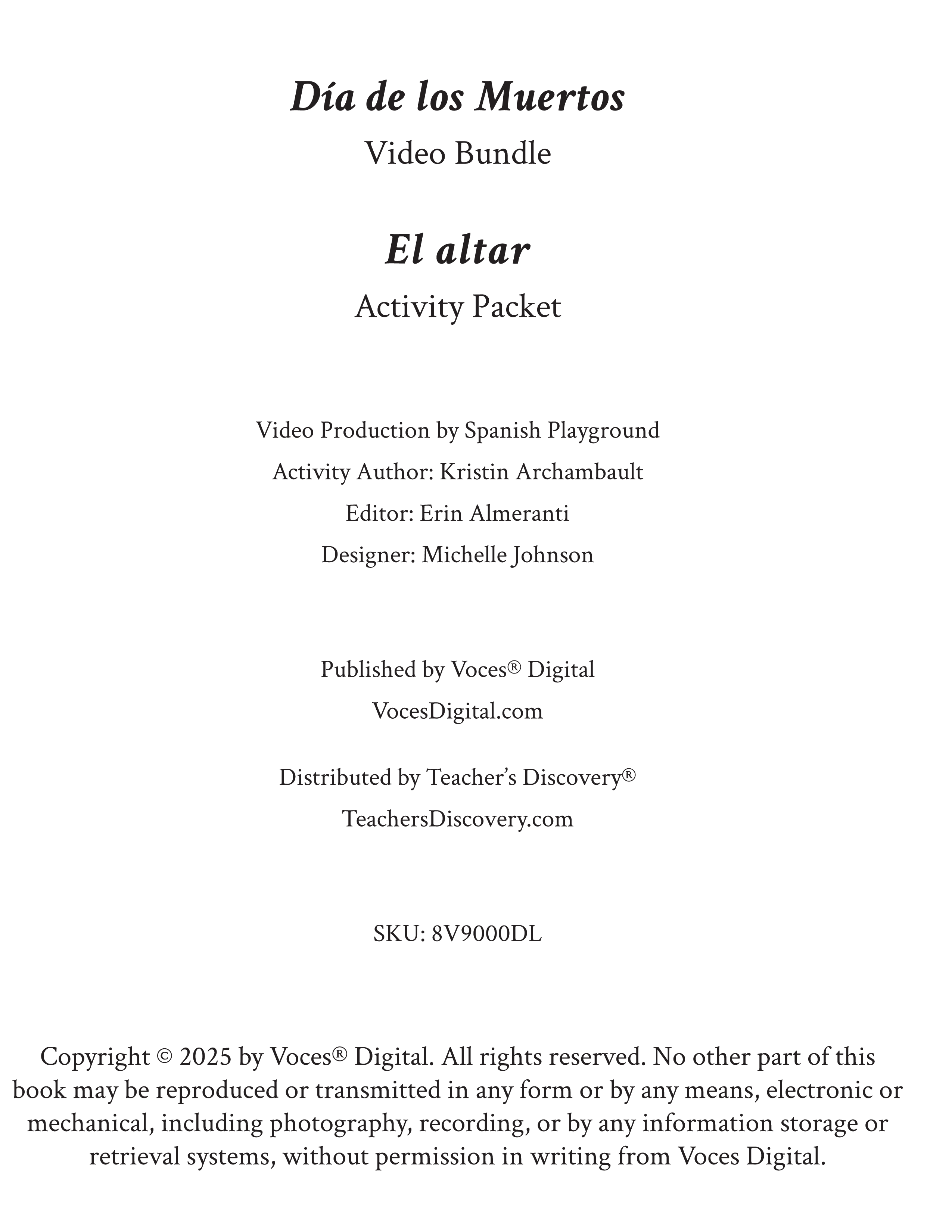 Día de los Muertos Video Bundle (4 videos + activity packet download) is backordered and will ship as soon as it is back in stock.