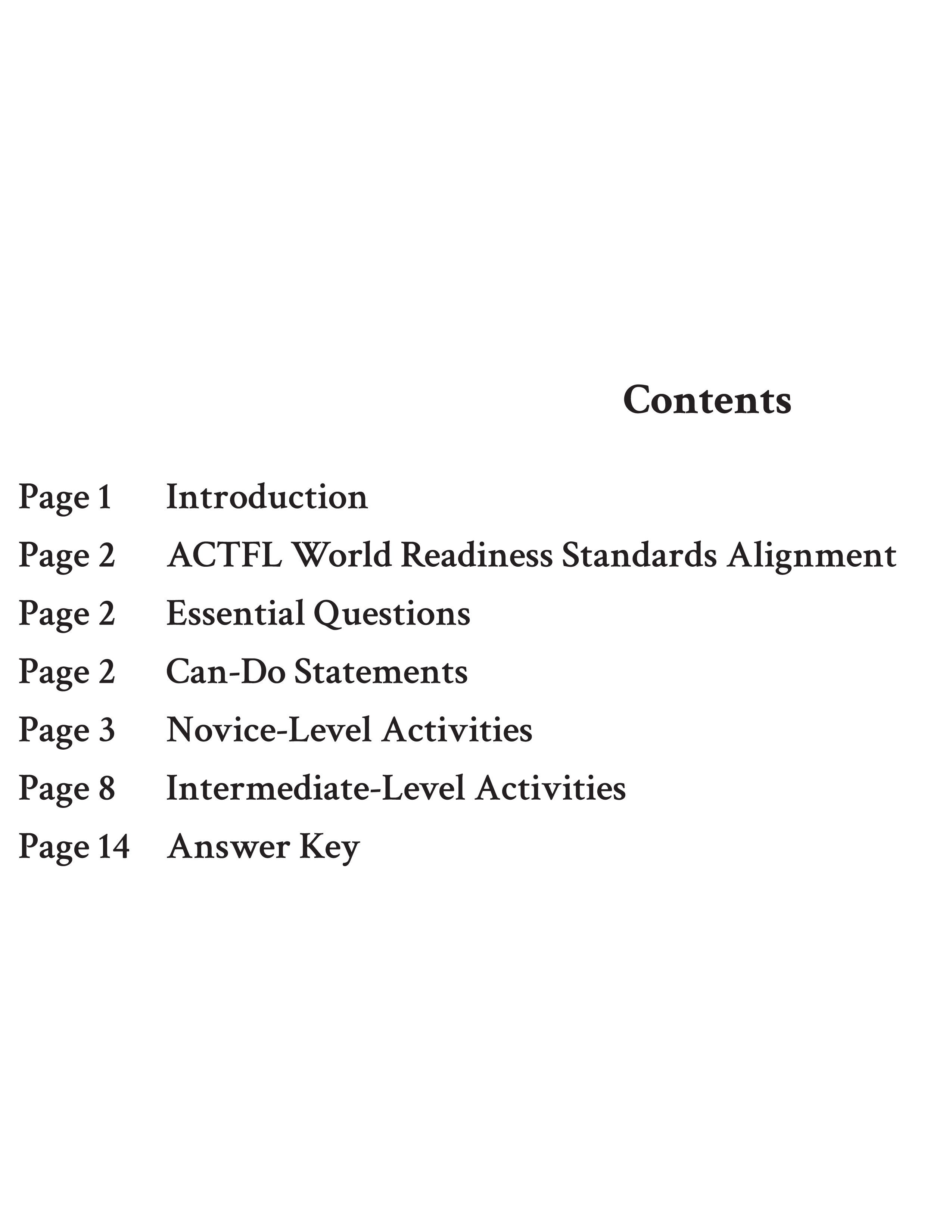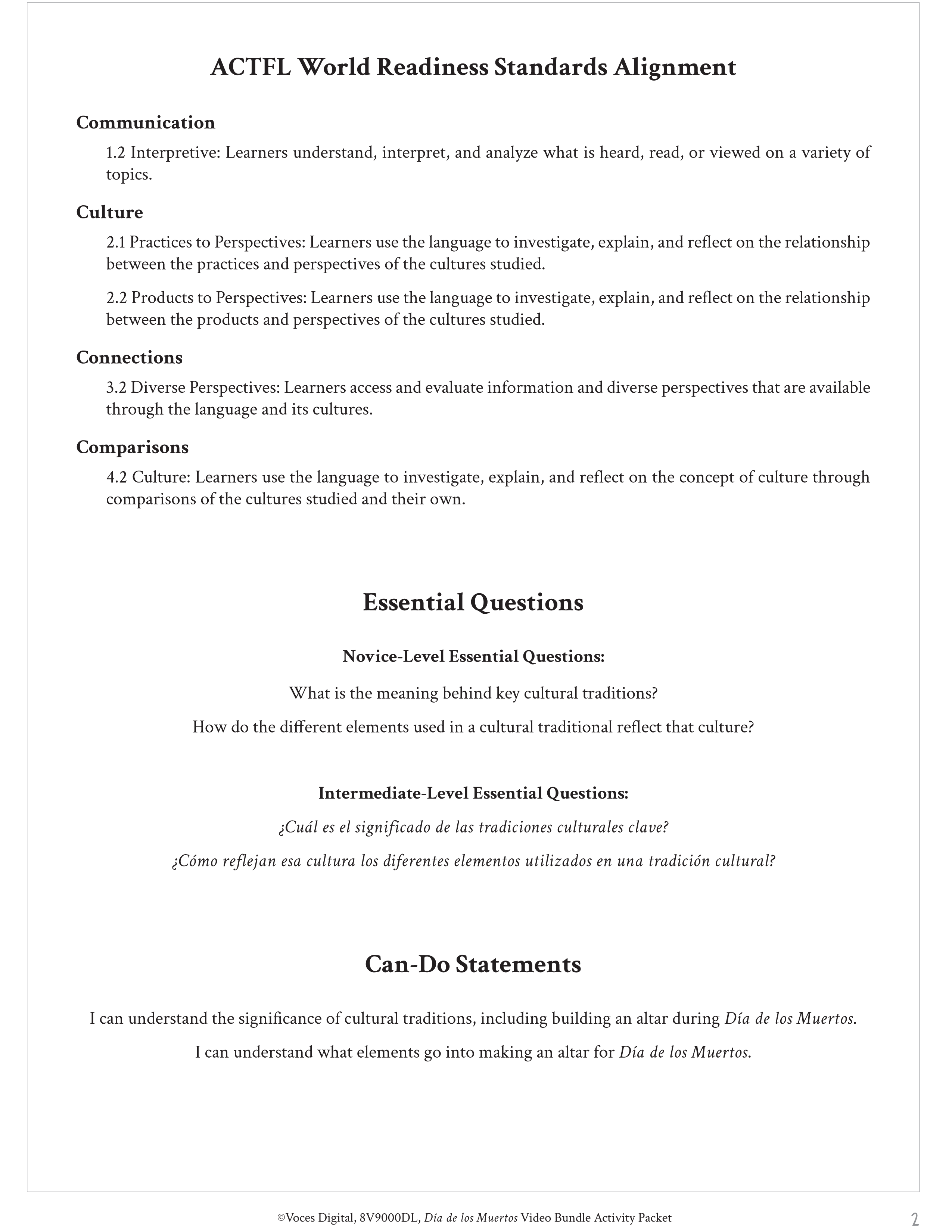 - teacher resources including ACTFL standards, Essential Questions, and Can-Do Statements
