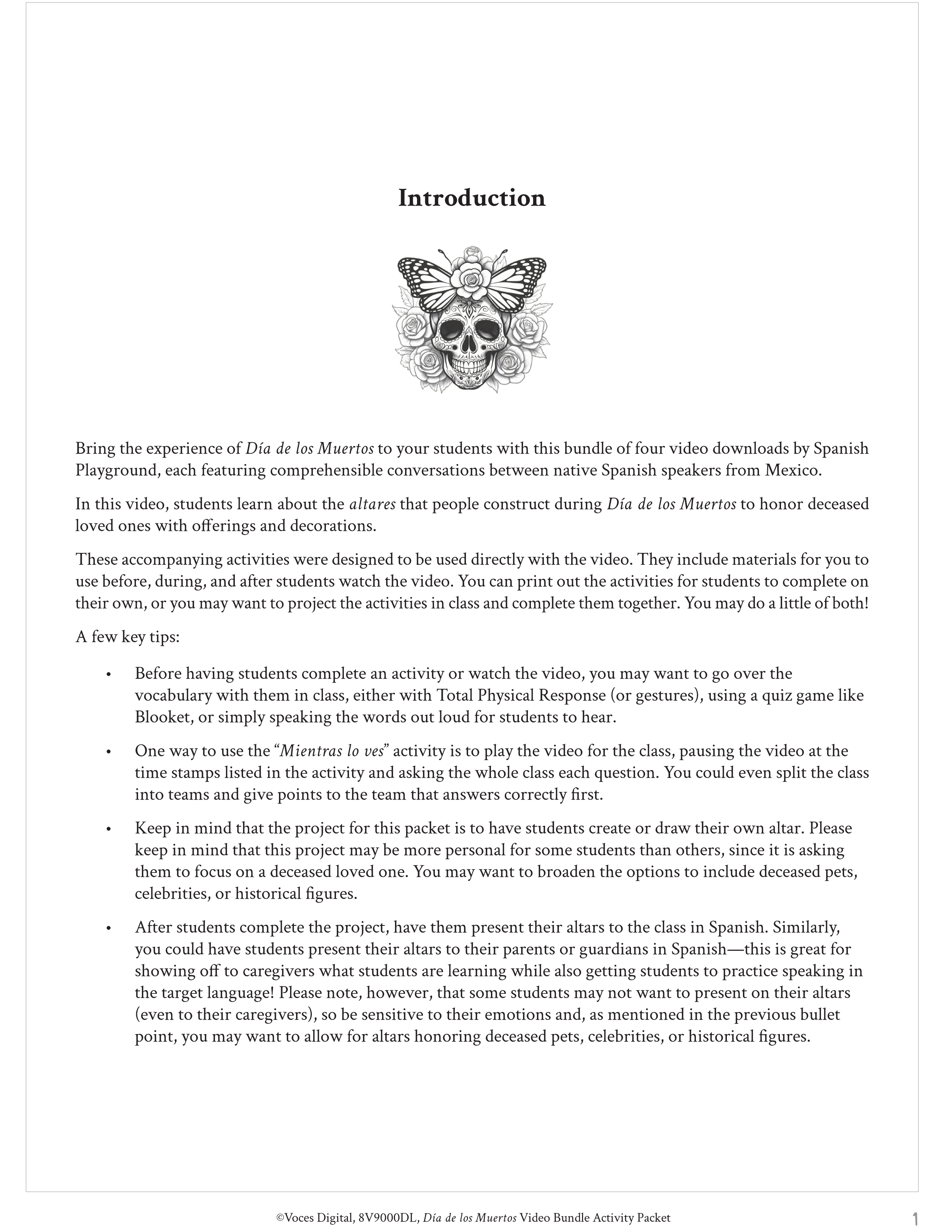 Día de los Muertos Video Bundle (4 videos + activity packet download)