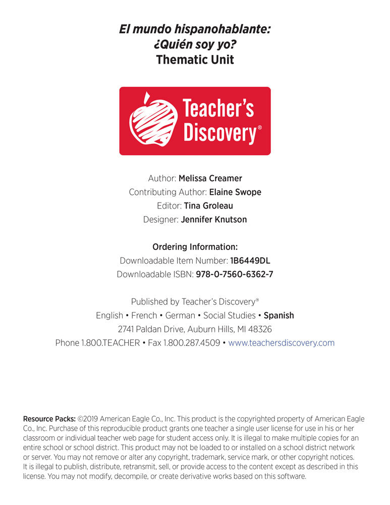 El mundo hispanohablante: ¿Quién soy yo? Spanish Thematic Unit - DIGITAL RESOURCE DOWNLOAD is backordered and will ship as soon as it is back in stock.