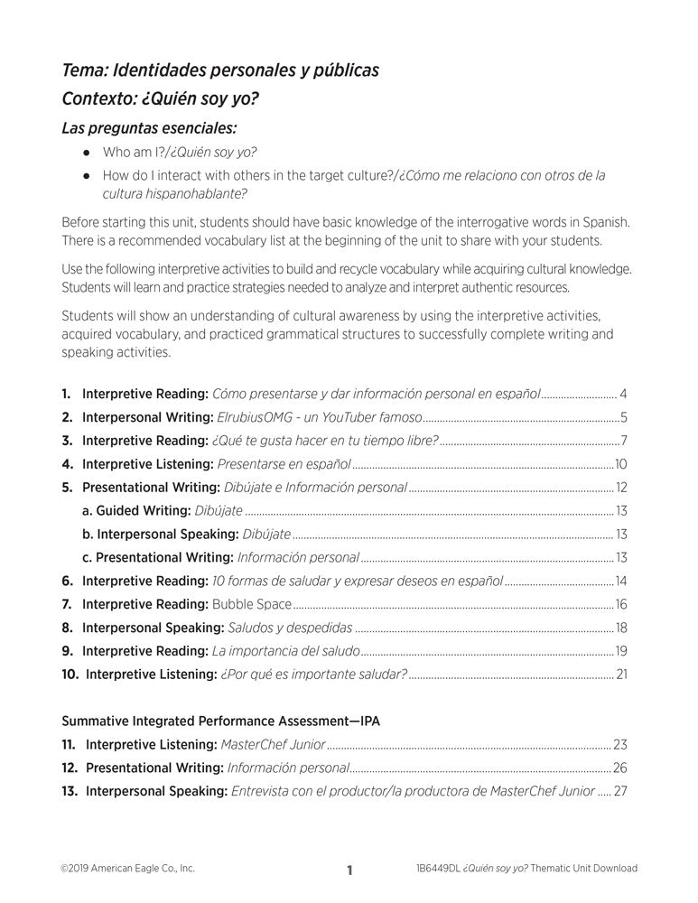 El mundo hispanohablante: ¿Quién soy yo? Spanish Thematic Unit - DIGITAL RESOURCE DOWNLOAD