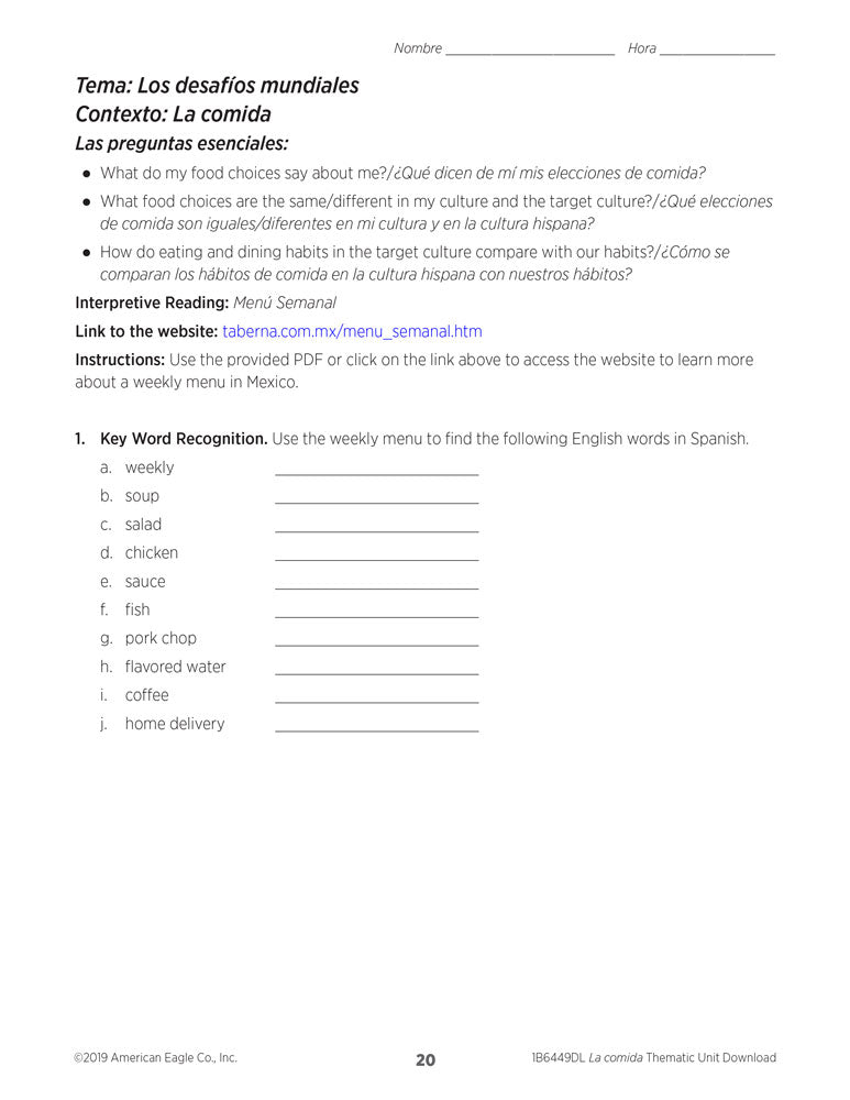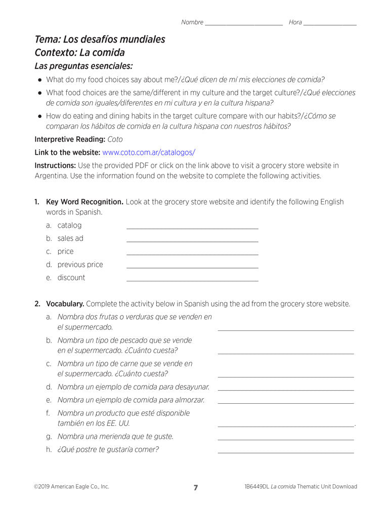 El mundo hispanohablante: La comida Spanish Thematic Unit—DOWNLOAD THIS FLEXIBLE DIGITAL RESOURCE TODAY!