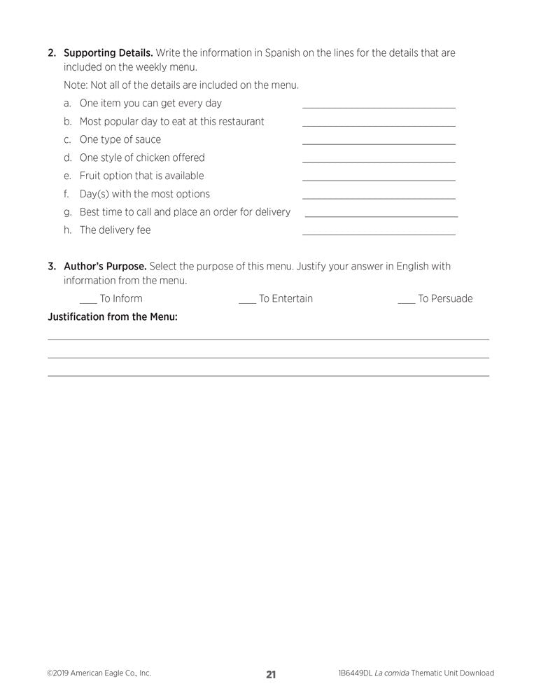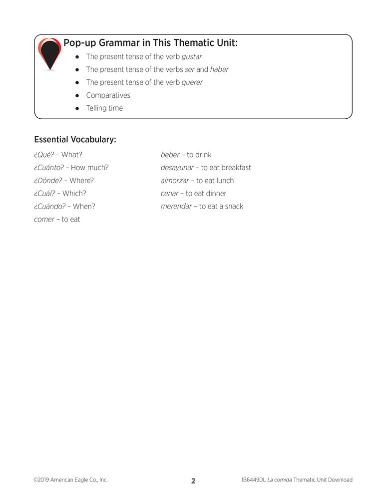 ©2019. English, Spanish. Level 1, Novice. Reproducible. Download (PDF). 58 pages.