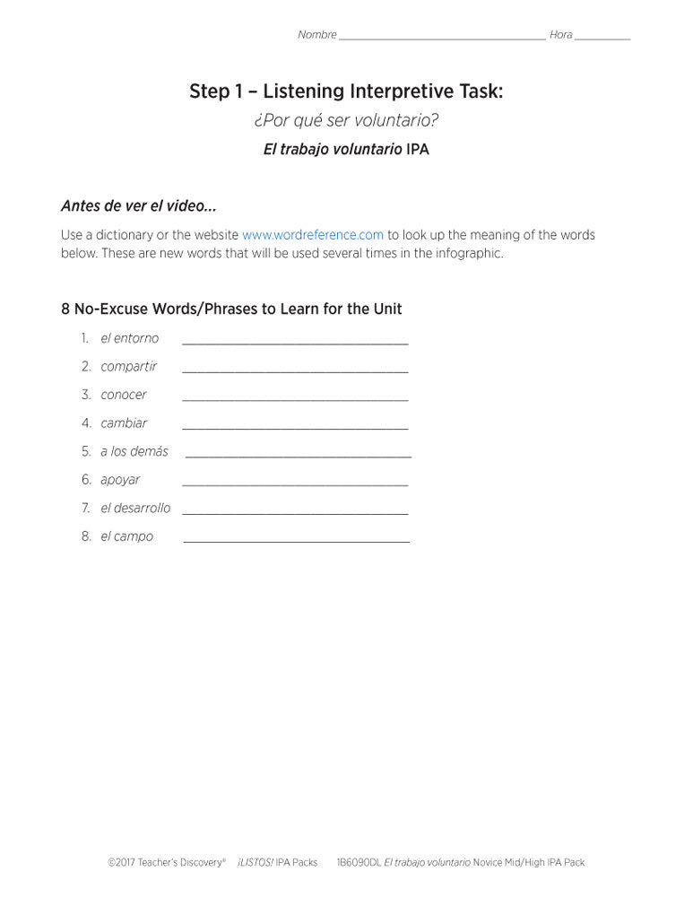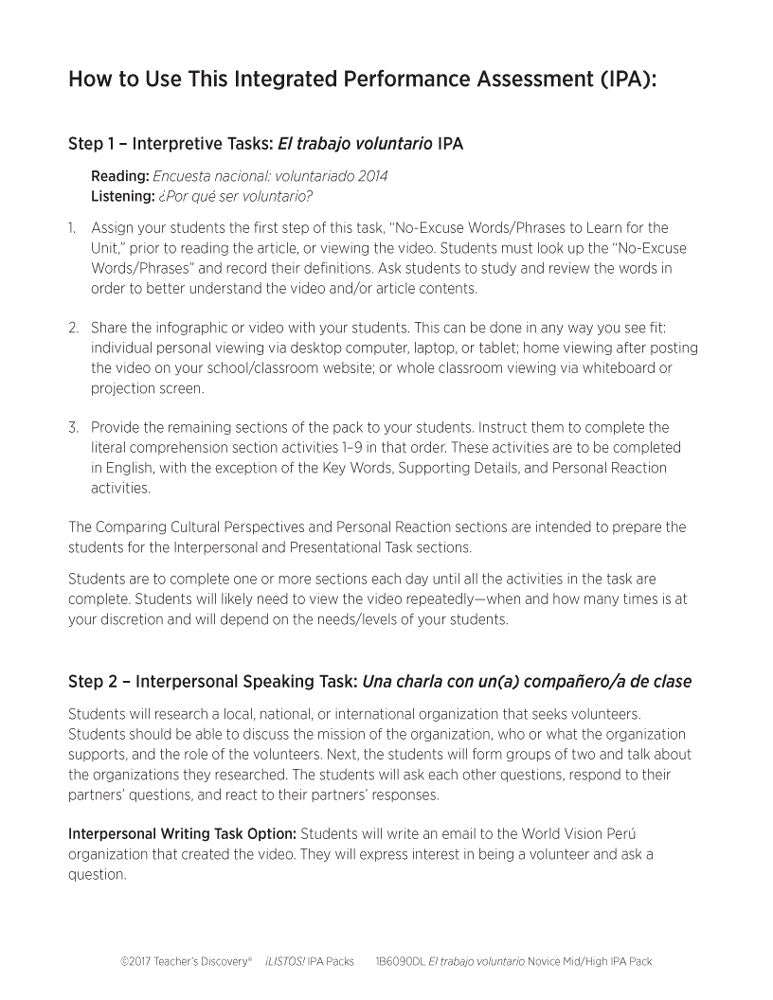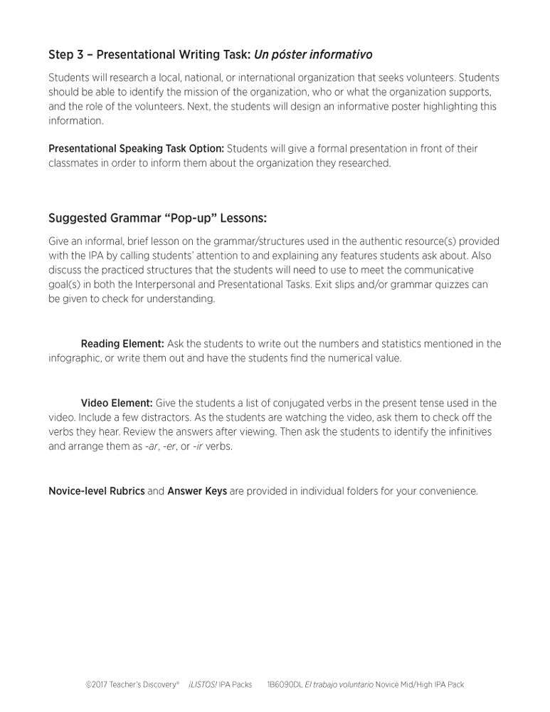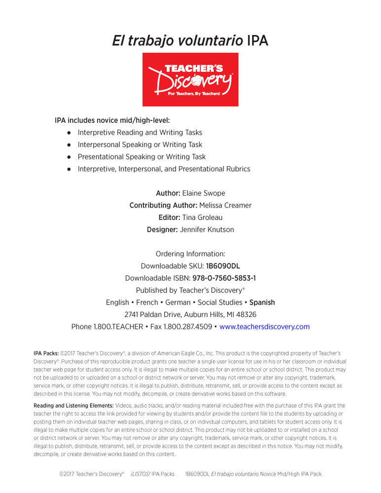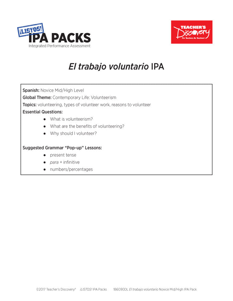 El trabajo voluntario Novice-High Spanish IPA Pack - DIGITAL RESOURCE DOWNLOAD