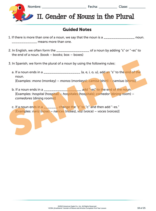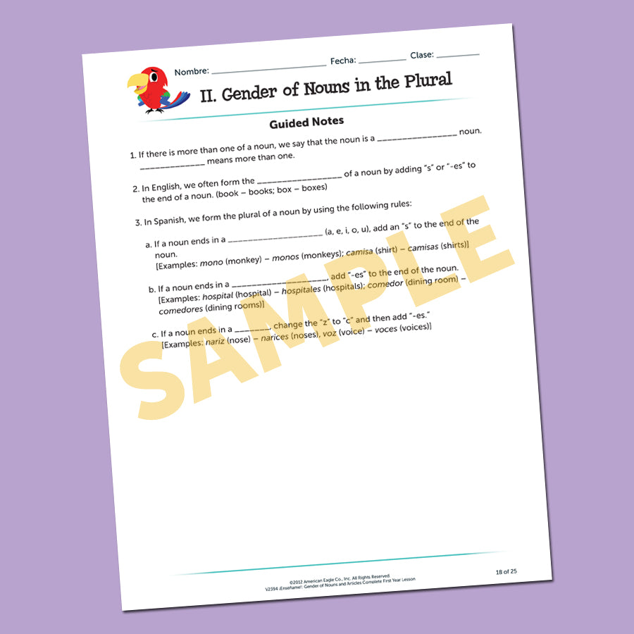 ¡Enséñame!™ Complete First Year Lessons: Gender of Nouns and Articles Download is backordered and will ship as soon as it is back in stock.