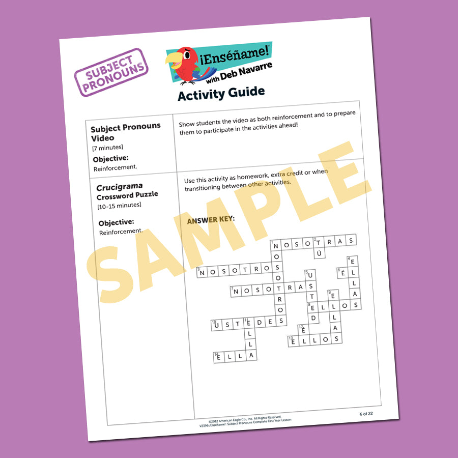 ¡Enséñame!™ Complete First Year Lessons: Subject Pronouns Download is backordered and will ship as soon as it is back in stock.