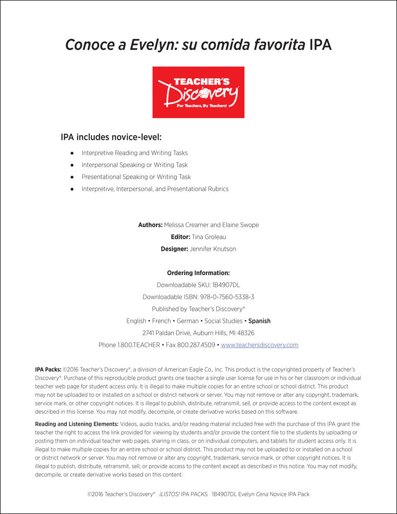 Evelyn Cena Novice-Mid Spanish IPA Pack - DIGITAL RESOURCE DOWNLOAD