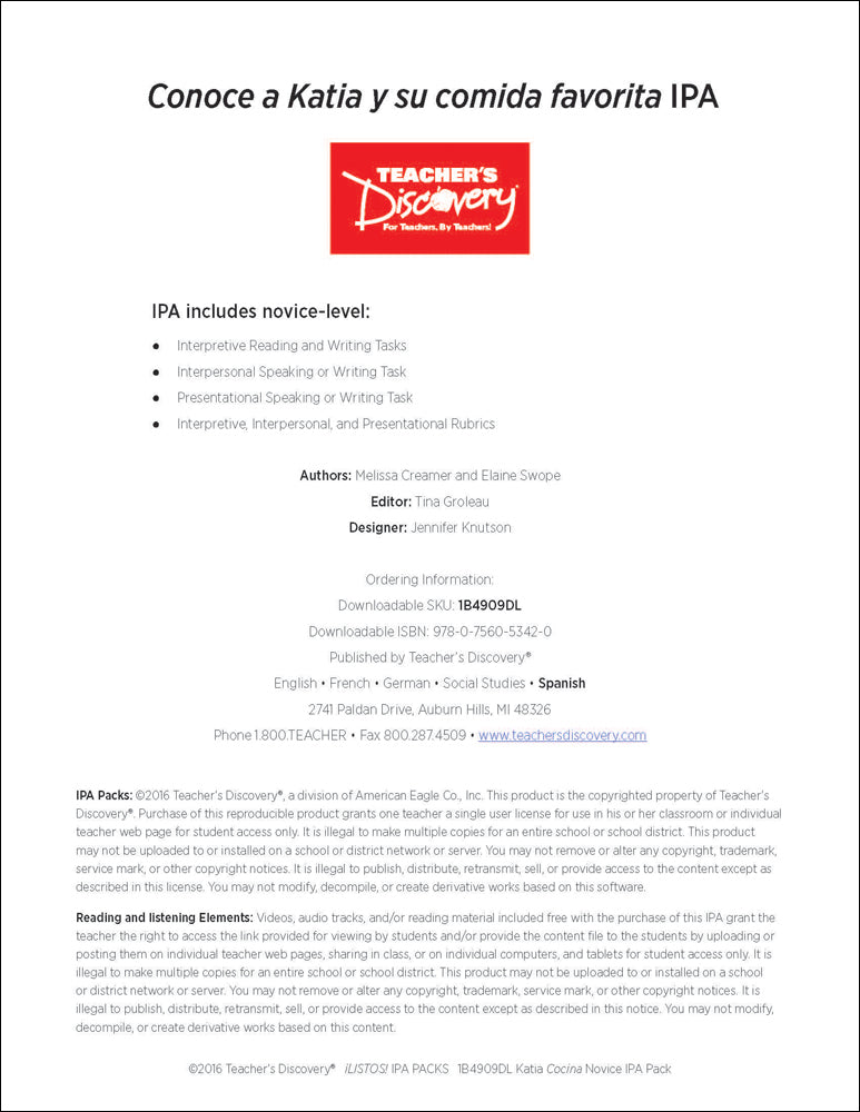 Katia Cocina Novice-Mid Spanish IPA Pack - DIGITAL RESOURCE DOWNLOAD