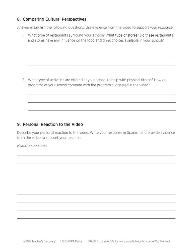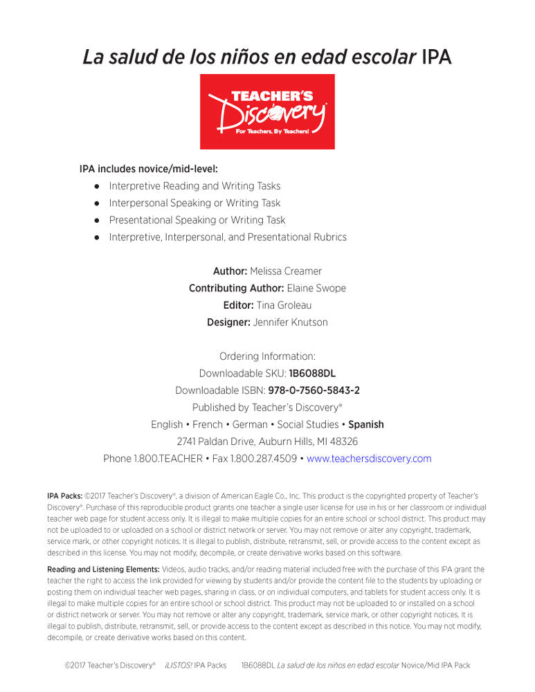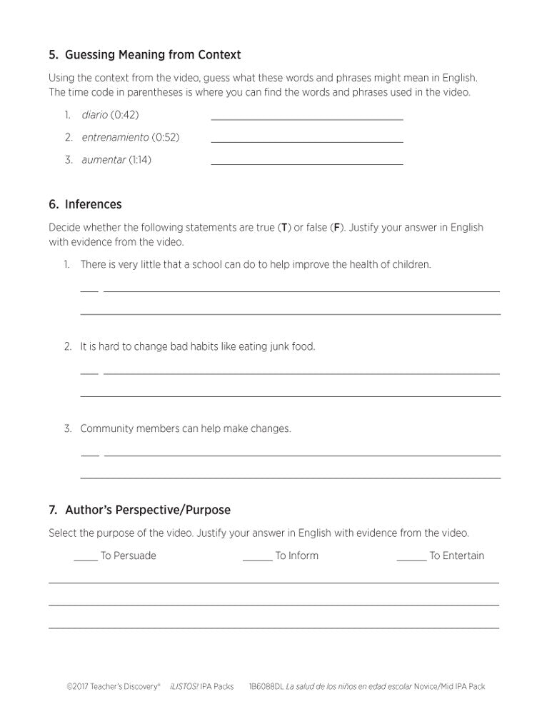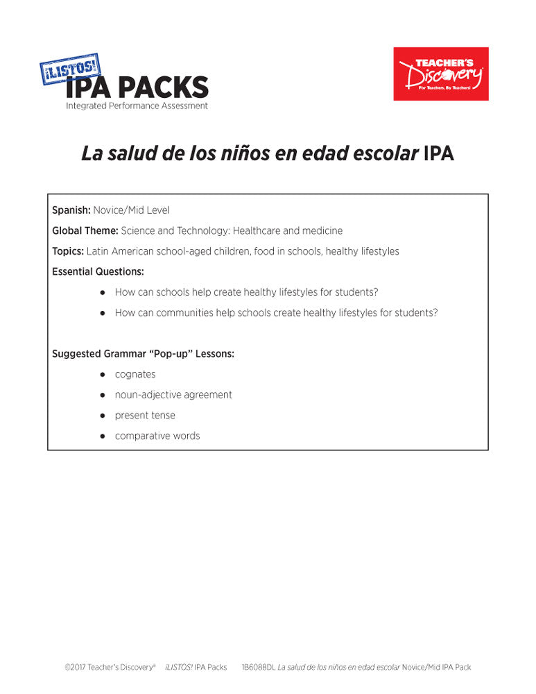 La salud de los niños en edad escolar Novice-Mid Spanish IPA Pack - DIGITAL RESOURCE DOWNLOAD