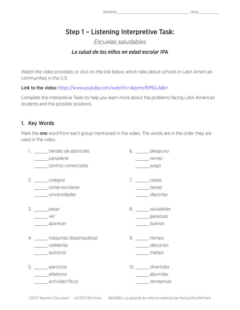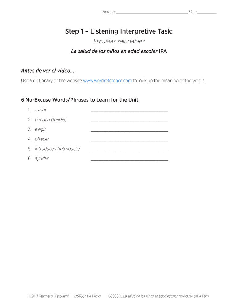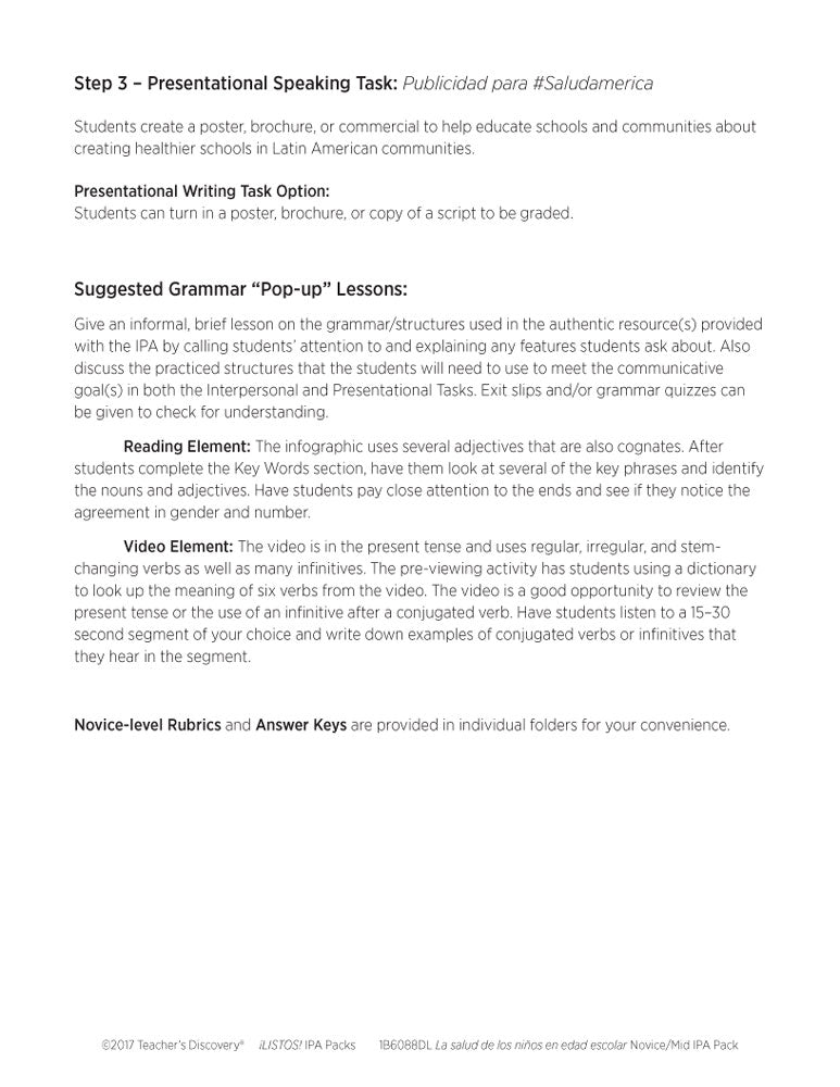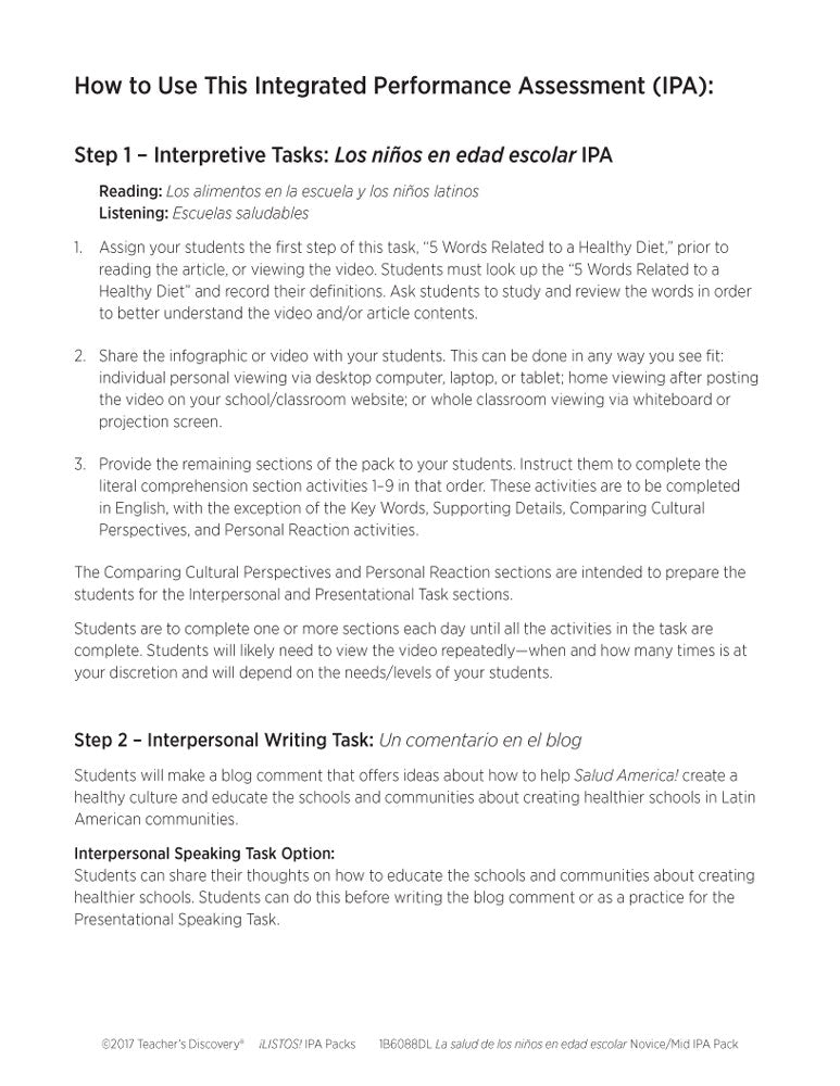 This ¡LISTOS! IPA Pack Download is based on two authentic resources: an infographic and a two-minute video talking about school in Latin American communities in the U.S. entirely in Spanish.