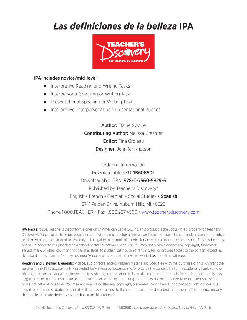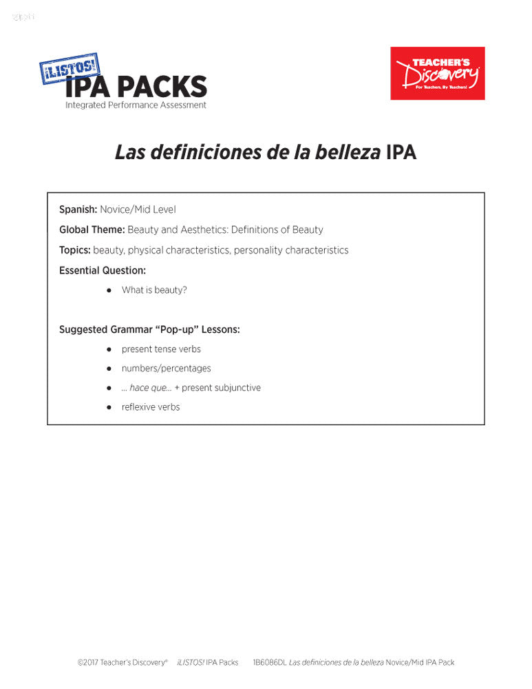 Las definiciones de la belleza Novice-Mid Spanish IPA Pack - DIGITAL RESOURCE DOWNLOAD